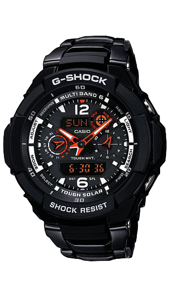 • Funkce a popis:Čas, datum, chronograf = stopky s přesností 1/100 vteřiny max. 24 hodin, automatický kalendář, budík, 5 x hodinový signál s funkcí Snooze, 12/24 hodinový ciferník, světové časy, radiově řízené, svítící ručky a indexy