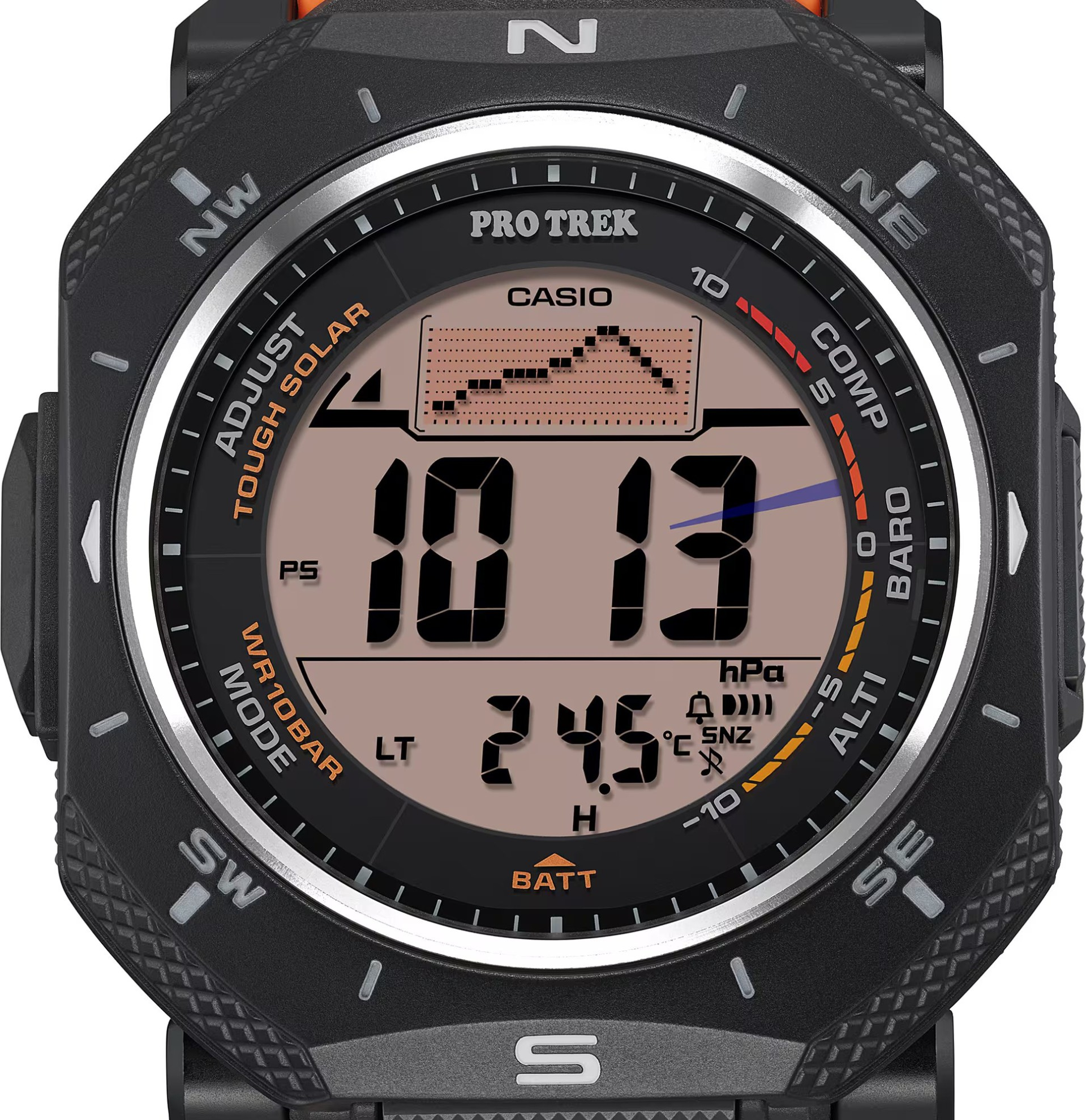 Casio PRO TREK PRG-69-4ER jsou solární outdoorové hodinky postavené na maximální praktičnosti v terénu. Hranaté pouzdro řady PRG-69 přináší moderní, odolný vzhled inspirovaný výbavou do přírody a současně zachovává přehlednost digitálního zobrazení. Kontrastní oranžový řemínek dává hodinkám výraznou identitu a v batohu i na zápěstí je snadno najdete. Tento model cílí na uživatele, kteří chtějí spolehlivý přístroj pro trekking, hory, kempování i každodenní režim ve městě.