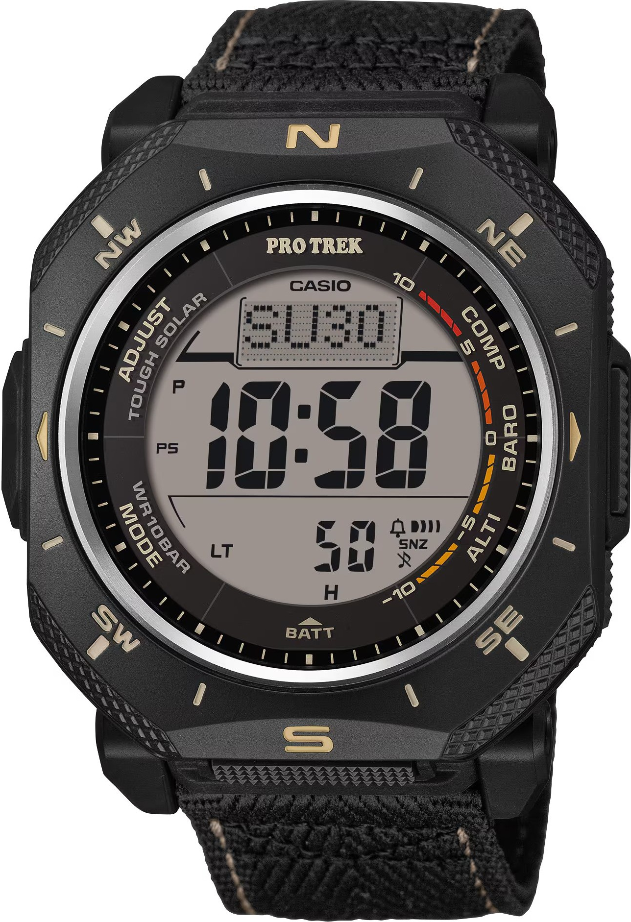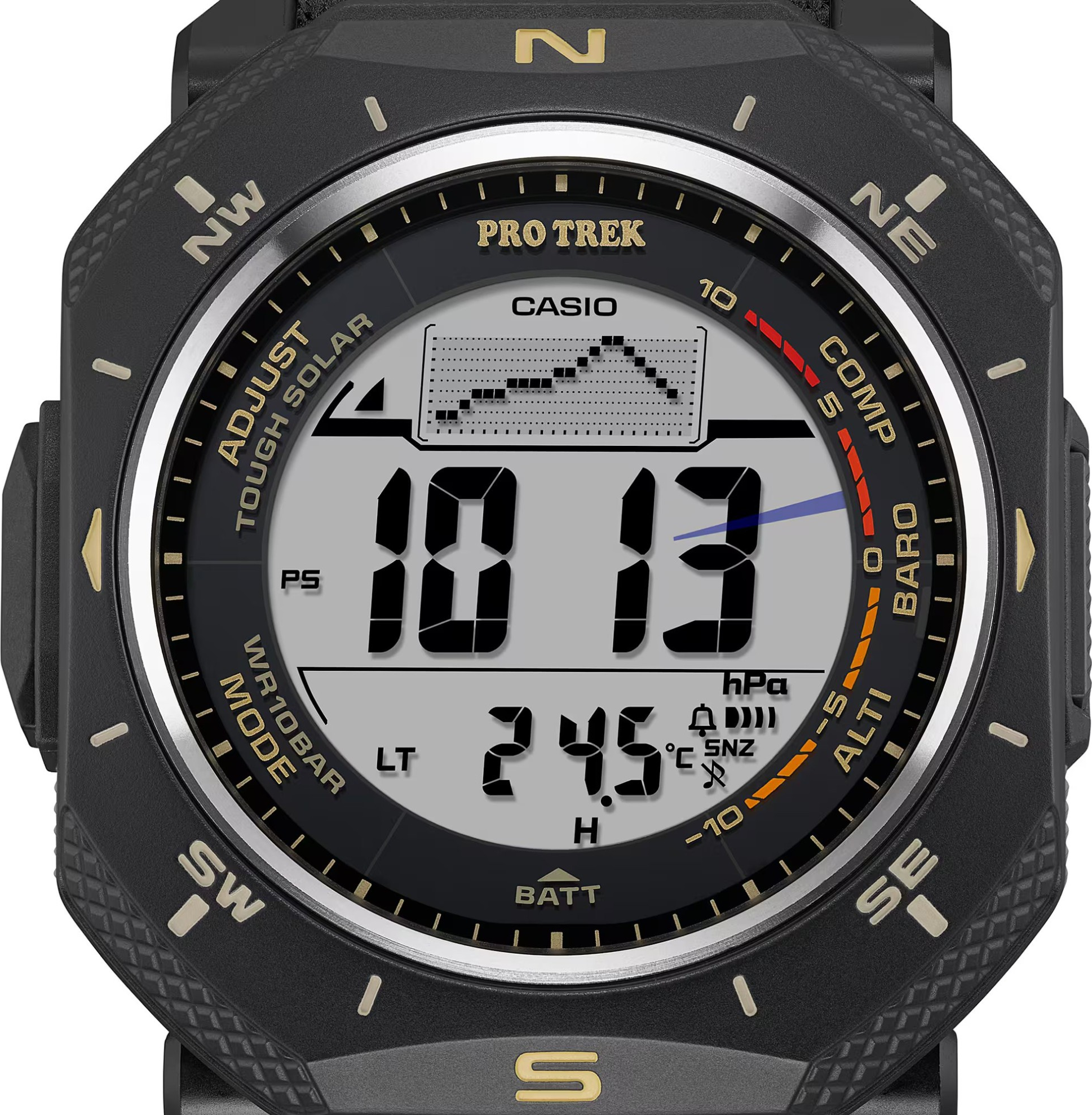 Casio PRO TREK PRG-69B-1ER jsou outdoorové hodinky, které míří na turistiku, trekking i každodenní nošení, když chcete mít na ruce skutečný nástroj. Zaujmou hranatým, kompaktním pouzdrem - jde o digitální PRO TREK s ostřejšími liniemi, které připomínají vybavení do terénu. Velký digitální číselník je stavěný na rychlý odečet informací v pohybu a celé pojetí modelu klade důraz na praktičnost, odolnost a spolehlivý provoz bez zbytečných starostí.
