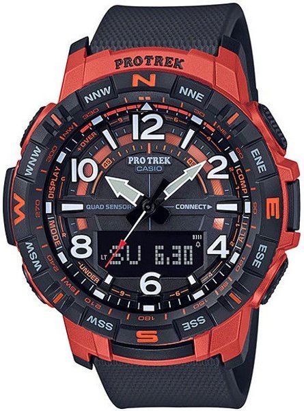 • Funkce a popis:Čas, datum, den v týdnu, měsíc, režim 12/24, stopky = chronograf, alarm, automatický kalendář, barometr, bluetooth, funkce "uklizení" ruček, kompas, krokoměr, odolnost proti nízkým teplotám, odpočítávací stopky, osvětlení, světové časy, teploměr, tón tlačítek, výškoměr
