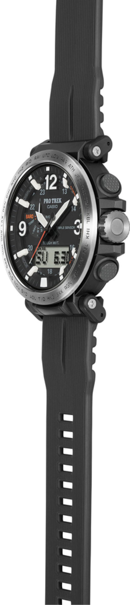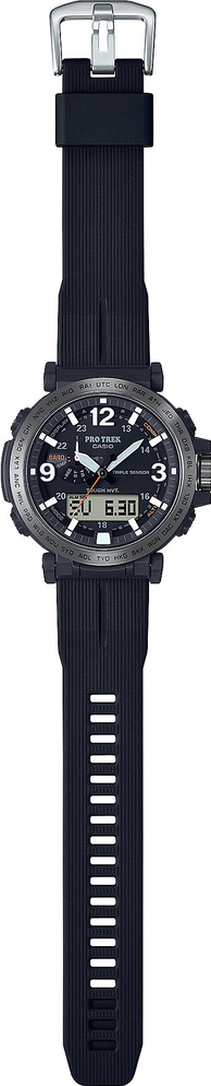 • Funkce a popis:Čas, datum, den v týdnu, solární dobíjení, stopky, kompas, budík, řízené rádiem, podsvícení, teploměr, výškoměr, barometr, utomatický kalendář, duální čas / GMT, světové časy, tlačítko tónu on/off, inteligentní korunka- kterou lze po stisku a následném otáčení volit mezi funkcemi a její zámek, jenž zaručí, že nedojde k nechtěnému přechodu do jíného modu hodinek náhodným stisknutím.
