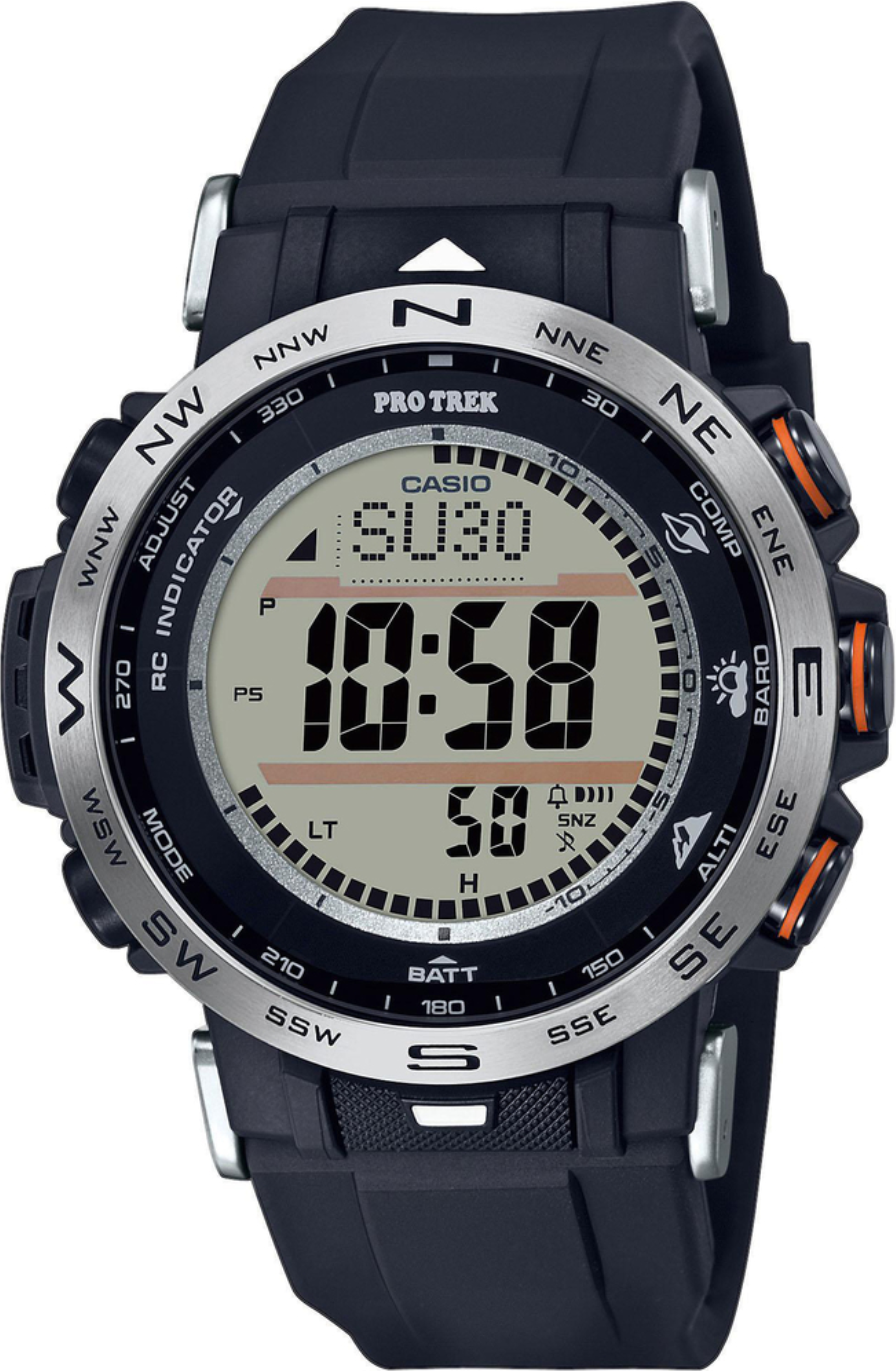 • Funkce a popis:Čas, Datum, Stopky, Odpočítávací stopky, Plně automatické LED osvětlení, displeje 5 budíků, Světové časy, Rádiem řízený čas, Výškoměr, Barometr, Teploměr, Kompas, Východ a západ slunce