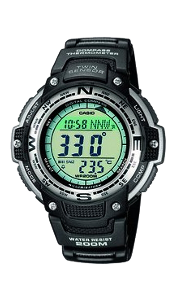 • Funkce a popis:Čas, datum, den v týdnu, plně automatický kalendář, digitální kompas, teploměr - rozsah -10°C až 60°C, po 0,1°C, přepínání mezi stupni Celsia a Fahrenheita, fáze měsíce, timer - odpočítavací stopky na 60 minut, stopky na 24 hodin s přesností 1/100 vteřiny, 5 budíčků, hodinový signál, 12/24 cyklus, úsporný režim sleep pro šetření baterie