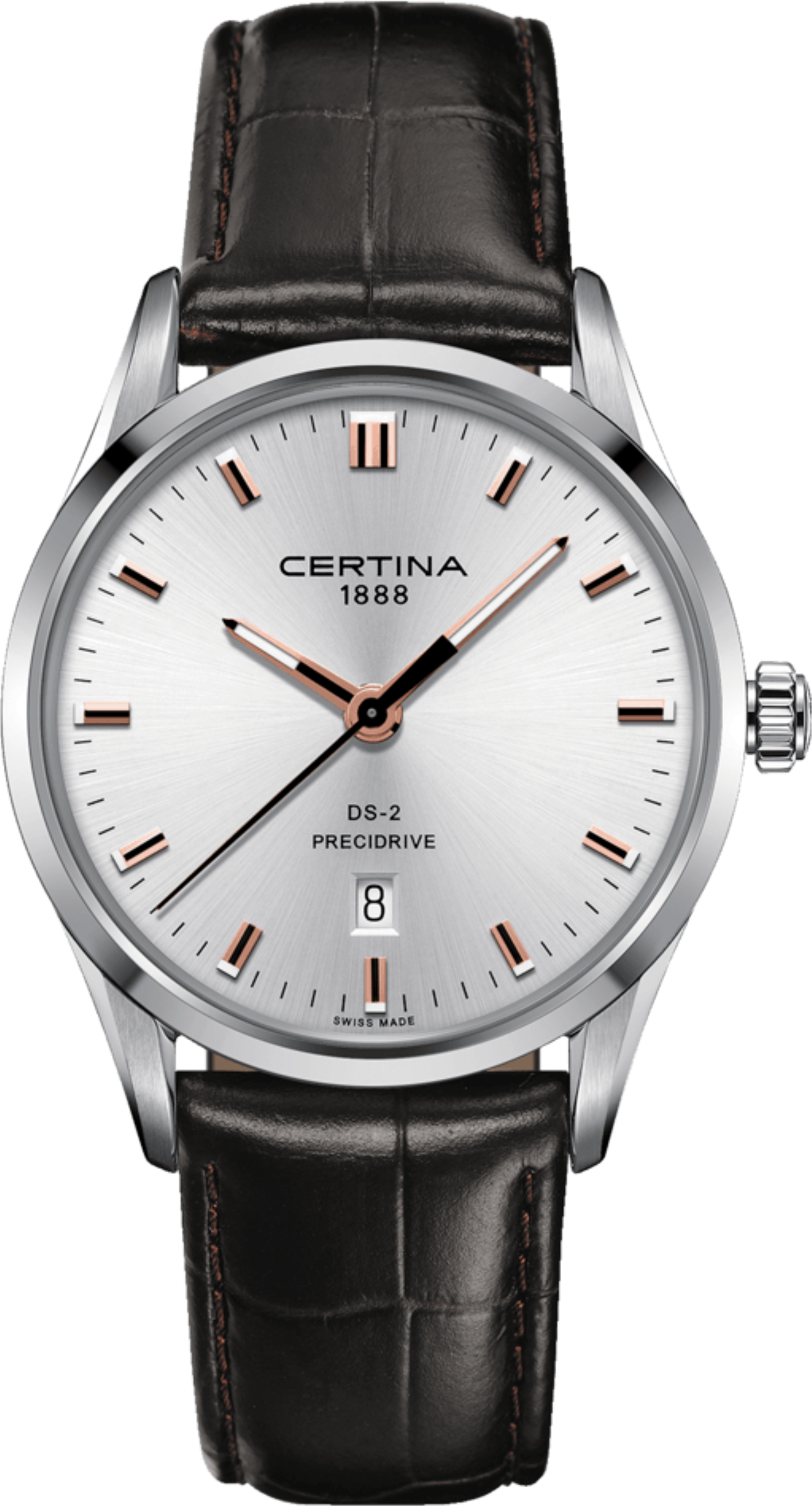 odolnost proti nárazům, abnormální tvrdost - díky tomu nenarušení povrchu ani při velké fyzické zátěži a nádherná čirá čistota, která zůstává po celou životnost sklíčka. Čtení času na hodinkách je poté radost - sklíčko je totiž stále jako nové. Safírová sklíčka se vyrábí v různých podobách a tvarech.Super-LumiNova (SLN) je luminiscenční materiál s vlastnostmi fosforu. Typ BG W9, který Certina používá, vydává ve tmě modravé světlo. Tato svítivost se ve tmě postupně ztrácí, ale na světle se automaticky obnovuje pro naplnění kapacity materiálů pro další noční či večerní svítivost.Certina používá pro výrobu svých nádherných kožených řemínků pouze opravdovou přírodní kůži. Řemínky jsou vyráběné s opravdovou pečlivostí pro maximální kvalitu s ohledem na každodenní nošení.Přesný a ještě přesnější - to je chronometr. Chronometr jsou hodinky, jejichž přesnost byla oficiálně testována a ověřena nezávislou laboratoří. Tento model byl testován oficiální švýcarskou testovací laboratoří Control Officiel Suisse des Chronometres (COSC) a byl mu udělen certifikát kvalityUšlechtilá nerez ocel 316L, kterou Certina používá, je mimořádně odolná,