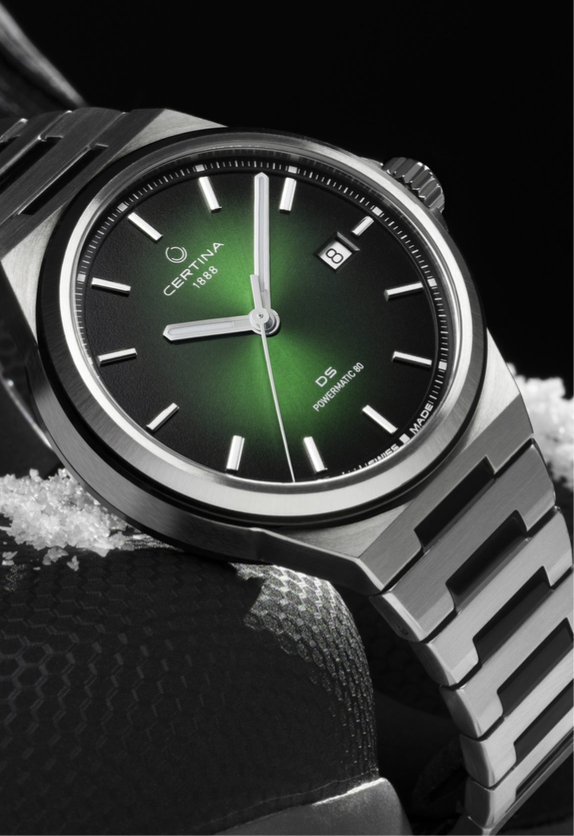 POwermatic 80 - automatický strojek s dvojnásobnou rezervou chodu oproti běžným modelům. Vysoká přesnost je zde dosažena velmi jemnou regulací šroubky setrvačce.Uzavřením hodinek šroubovací korunkou docílíme jednoho z nejlepších utěsnění pouzdra, které se v hodinářském průmyslu používá. Na obrázku můžeme vidět korunku ve vyšroubované poloze, ze které má poté korunka výsuvem směrem ven obvykle další dvě polohy na rychloposuv datumu a řízení času. Zatlačením korunky směrem k závitu a zašroubováním korunky k pouzdru již závit nevidíme - současně se zašroubováním korunky dotláčíme těsnění k pouzdru, čímž se hodinky až hermeticky uzavřou.Charakteristiky, kterými safírové sklo přispívá k hodinkám, jsou: extrémní