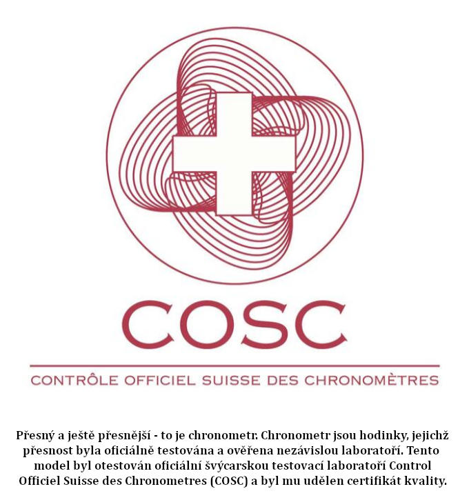Přesný a ještě přesnější - to je chronometr. Chronometr jsou hodinky, jejichž přesnost byla oficiálně testována a ověřena nezávislou laboratoří. Tento model byl testován oficiální švýcarskou testovací laboratoří Control Officiel Suisse des Chronometres (COSC) a byl mu udělen certifikát kvality