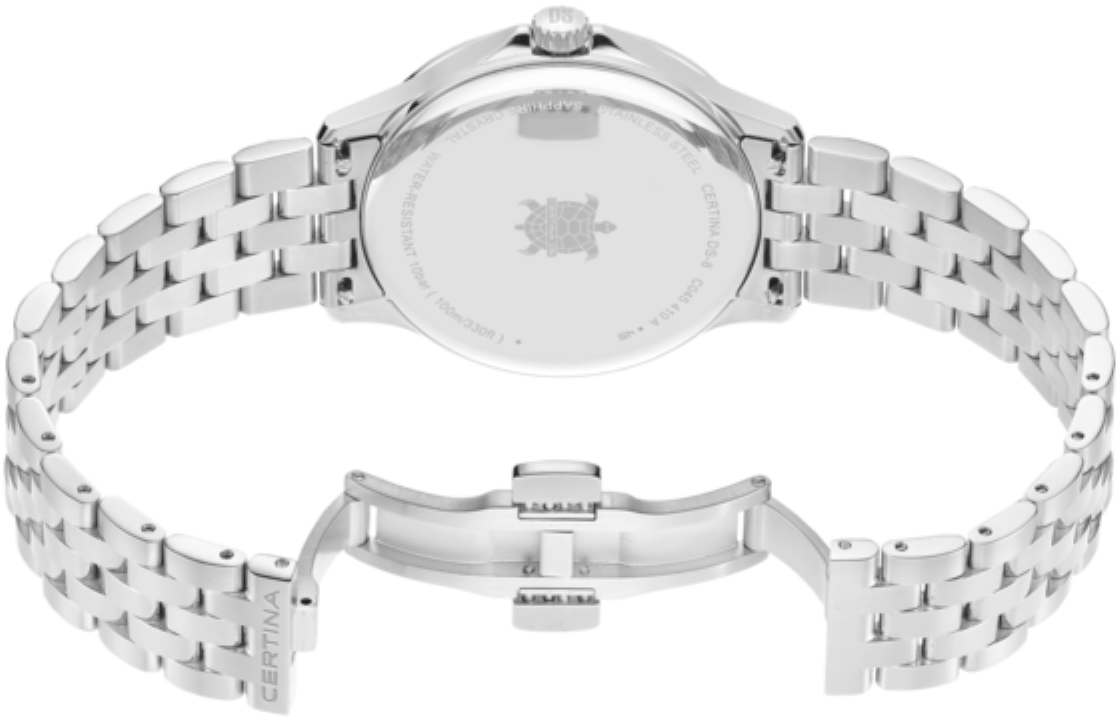 odolnost proti nárazům, abnormální tvrdost - díky tomu nenarušení povrchu ani při velké fyzické zátěži a nádherná čirá čistota, která zůstává po celou životnost sklíčka. Čtení času na hodinkách je poté radost - sklíčko je totiž stále jako nové. Safírová sklíčka se vyrábí v různých podobách a tvarech.Přesný a ještě přesnější - to je chronometr. Chronometr jsou hodinky, jejichž přesnost byla oficiálně testována a ověřena nezávislou laboratoří. Tento model byl testován oficiální švýcarskou testovací laboratoří Control Officiel Suisse des Chronometres (COSC) a byl mu udělen certifikát kvalityUšlechtilá nerez ocel 316L, kterou Certina používá, je mimořádně odolná,