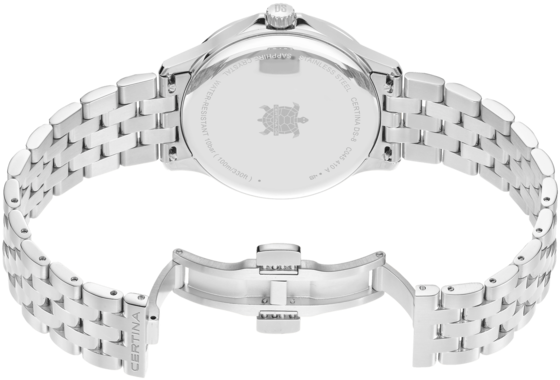odolnost proti nárazům, abnormální tvrdost - díky tomu nenarušení povrchu ani při velké fyzické zátěži a nádherná čirá čistota, která zůstává po celou životnost sklíčka. Čtení času na hodinkách je poté radost - sklíčko je totiž stále jako nové. Safírová sklíčka se vyrábí v různých podobách a tvarech.Přesný a ještě přesnější - to je chronometr. Chronometr jsou hodinky, jejichž přesnost byla oficiálně testována a ověřena nezávislou laboratoří. Tento model byl testován oficiální švýcarskou testovací laboratoří Control Officiel Suisse des Chronometres (COSC) a byl mu udělen certifikát kvalityUšlechtilá nerez ocel 316L, kterou Certina používá, je mimořádně odolná,