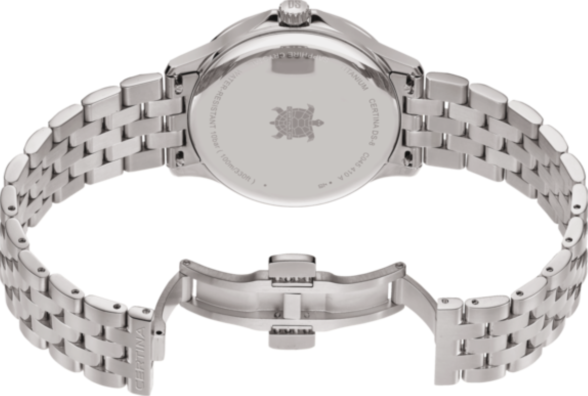 odolnost proti nárazům, abnormální tvrdost - díky tomu nenarušení povrchu ani při velké fyzické zátěži a nádherná čirá čistota, která zůstává po celou životnost sklíčka. Čtení času na hodinkách je poté radost - sklíčko je totiž stále jako nové. Safírová sklíčka se vyrábí v různých podobách a tvarech.Přesný a ještě přesnější - to je chronometr. Chronometr jsou hodinky, jejichž přesnost byla oficiálně testována a ověřena nezávislou laboratoří. Tento model byl testován oficiální švýcarskou testovací laboratoří Control Officiel Suisse des Chronometres (COSC) a byl mu udělen certifikát kvalityTitan (titanium) je kovový prvek, který je mimořádně odolný, 100% hypoalergenní a antikorozivý. Jeho další předností je neobyčejná lehkost - je přibližně o polovinu lehčí než ušlechtilá nerez ocel. Tento materiál má v matném provedení elegantní šedou barvu, v lesku je čistě stříbrný.