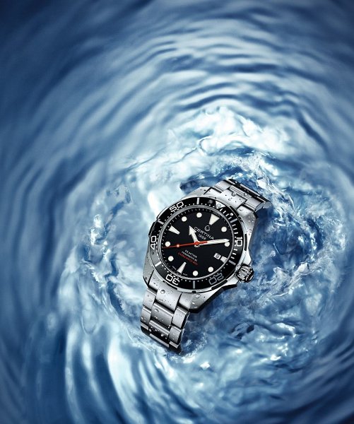 • Funkce a popis:Čas, datum, jednosměrně otočná luneta, strojek swiss Powermatic 80 – 23 kamenů = rezerva chodu 80 hodin, polokmity setrvačky 21.600/h (3 Hz) = diference 3 - 5 vteřin denně (jemná regulace na věnci setrvačky), automat + ruční nátah, zapínání náramku = překlapávací spona, svítící ručky a indexy, šroubovací korunka