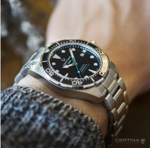 odolnost proti nárazům, abnormální tvrdost - díky tomu nenarušení povrchu ani při velké fyzické zátěži a nádherná čirá čistota, která zůstává po celou životnost sklíčka. Čtení času na hodinkách je poté radost - sklíčko je totiž stále jako nové. Safírová sklíčka se vyrábí v různých podobách a tvarech.Super-LumiNova (SLN) je luminiscenční materiál s vlastnostmi fosforu. Typ BG W9, který Certina používá, vydává ve tmě modravé světlo. Tato svítivost se ve tmě postupně ztrácí, ale na světle se automaticky obnovuje pro naplnění kapacity materiálů pro další noční či večerní svítivost.Ušlechtilá nerez ocel 316L, kterou Certina používá, je mimořádně odolná,