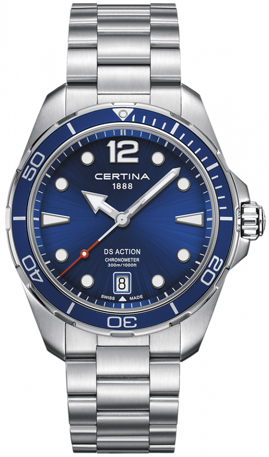 odolnost proti nárazům, abnormální tvrdost - díky tomu nenarušení povrchu ani při velké fyzické zátěži a nádherná čirá čistota, která zůstává po celou životnost sklíčka. Čtení času na hodinkách je poté radost - sklíčko je totiž stále jako nové. Safírová sklíčka se vyrábí v různých podobách a tvarech.Super-LumiNova (SLN) je luminiscenční materiál s vlastnostmi fosforu. Typ BG W9, který Certina používá, vydává ve tmě modravé světlo. Tato svítivost se ve tmě postupně ztrácí, ale na světle se automaticky obnovuje pro naplnění kapacity materiálů pro další noční či večerní svítivost.Přesný a ještě přesnější - to je chronometr. Chronometr jsou hodinky, jejichž přesnost byla oficiálně testována a ověřena nezávislou laboratoří. Tento model byl testován oficiální švýcarskou testovací laboratoří Control Officiel Suisse des Chronometres (COSC) a byl mu udělen certifikát kvalityUšlechtilá nerez ocel 316L, kterou Certina používá, je mimořádně odolná,