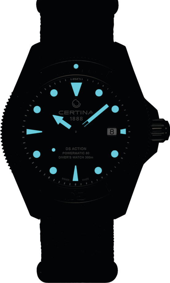 odolnost proti nárazům, abnormální tvrdost - díky tomu nenarušení povrchu ani při velké fyzické zátěži a nádherná čirá čistota, která zůstává po celou životnost sklíčka. Čtení času na hodinkách je poté radost - sklíčko je totiž stále jako nové. Safírová sklíčka se vyrábí v různých podobách a tvarech.Super-LumiNova (SLN) je luminiscenční materiál s vlastnostmi fosforu. Typ BG W9, který Certina používá, vydává ve tmě modravé světlo. Tato svítivost se ve tmě postupně ztrácí, ale na světle se automaticky obnovuje pro naplnění kapacity materiálů pro další noční či večerní svítivost.PVD povrchová úprava se vyrábí v mnoha tónech - sportovněelegantní černá, sportovní modrá, elegantní zlatá či decentní hnědá + mnoho dalších odstínů. PVD je nitrid titanu, který se ve vakuu nanáší na základní materiál, nejčastěji ocel a titan. Povrch je poté velmi tvrdý, chemicky a