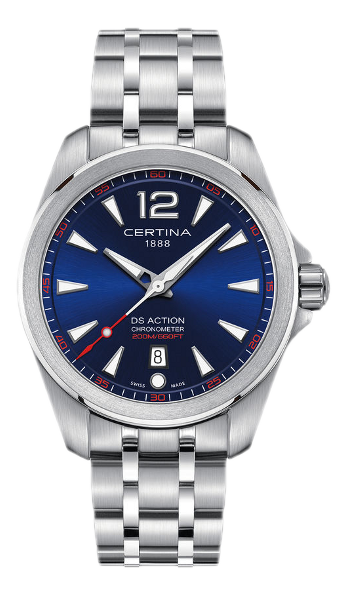 odolnost proti nárazům, abnormální tvrdost - díky tomu nenarušení povrchu ani při velké fyzické zátěži a nádherná čirá čistota, která zůstává po celou životnost sklíčka. Čtení času na hodinkách je poté radost - sklíčko je totiž stále jako nové. Safírová sklíčka se vyrábí v různých podobách a tvarech.Super-LumiNova (SLN) je luminiscenční materiál s vlastnostmi fosforu. Typ BG W9, který Certina používá, vydává ve tmě modravé světlo. Tato svítivost se ve tmě postupně ztrácí, ale na světle se automaticky obnovuje pro naplnění kapacity materiálů pro další noční či večerní svítivost.Přesný a ještě přesnější - to je chronometr. Chronometr jsou hodinky, jejichž přesnost byla oficiálně testována a ověřena nezávislou laboratoří. Tento model byl testován oficiální švýcarskou testovací laboratoří Control Officiel Suisse des Chronometres (COSC) a byl mu udělen certifikát kvalityUšlechtilá nerez ocel 316L, kterou Certina používá, je mimořádně odolná,
