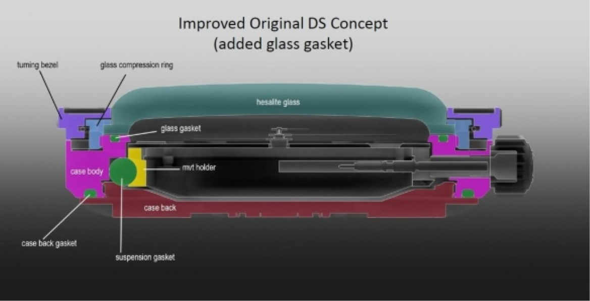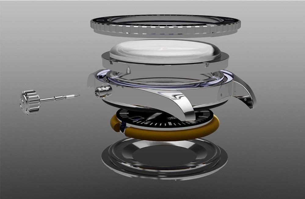 Uzavřením hodinek šroubovací korunkou docílíme jednoho z nejlepších utěsnění pouzdra, které se v hodinářském průmyslu používá. Na obrázku můžeme vidět korunku ve vyšroubované poloze, ze které má poté korunka výsuvem směrem ven obvykle další dvě polohy na rychloposuv datumu a řízení času. Zatlačením korunky směrem k závitu a zašroubováním korunky k pouzdru již závit nevidíme - současně se zašroubováním korunky dotláčíme těsnění k pouzdru, čímž se hodinky až hermeticky uzavřou.