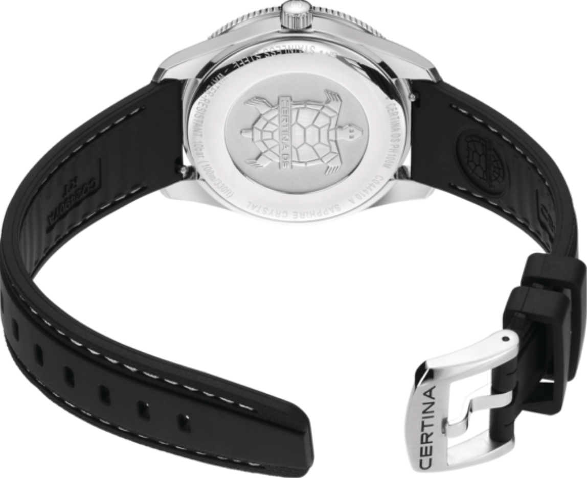 odolnost proti nárazům, abnormální tvrdost - díky tomu nenarušení povrchu ani při velké fyzické zátěži a nádherná čirá čistota, která zůstává po celou životnost sklíčka. Čtení času na hodinkách je poté radost - sklíčko je totiž stále jako nové. Safírová sklíčka se vyrábí v různých podobách a tvarech.Přesný a ještě přesnější - to je chronometr. Chronometr jsou hodinky, jejichž přesnost byla oficiálně testována a ověřena nezávislou laboratoří. Tento model byl testován oficiální švýcarskou testovací laboratoří Control Officiel Suisse des Chronometres (COSC) a byl mu udělen certifikát kvalityUšlechtilá nerez ocel 316L, kterou Certina používá, je mimořádně odolná,