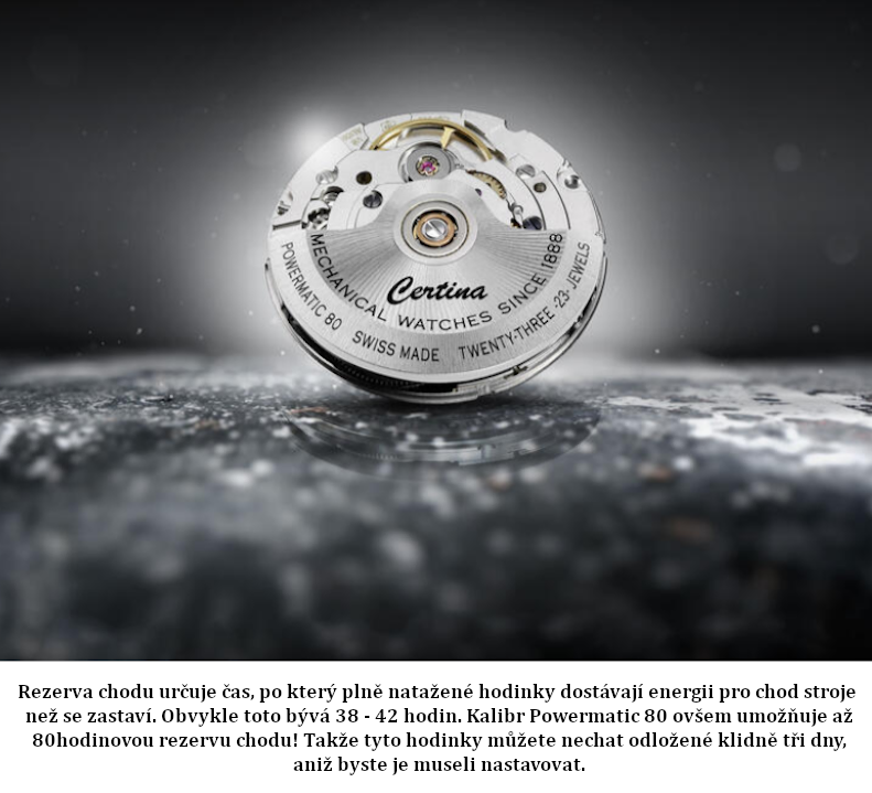 Kromě vysoké přesnosti disponuje inovativní automatický strojek Powermatic 80 také rezervou chodu 80 hodin, což je dvojnásobek oproti srovnatelným modelům. To například znamená, že když si hodinky v pátek odložíte, v pondělí Vám stále ukazují přesný čas.
