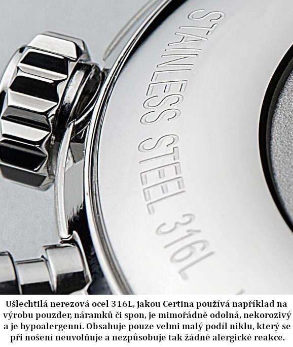 Ušlechtilá nerez ocel 316L, kterou Certina používá, je mimořádně odolná,
