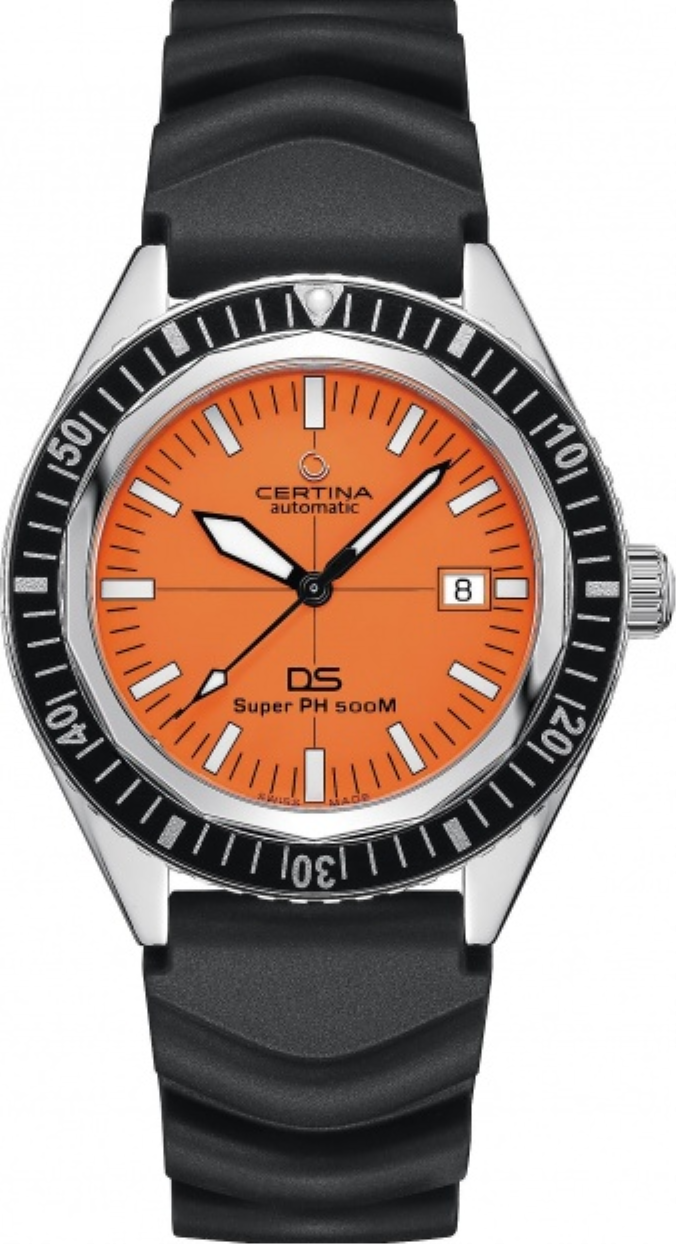 Úchvatné hodinky DS Super PH500M zcela jistě zaujmou svým retro stylem a oranžovým číselníkem. Díky velkému množství funkčních prvků, jako je pružina NivachronTM odolná vůči magnetickým polím a vodotěsnost až do 500 m, jsou tyto potápěčské hodinky ideálním společníkem na každou cestu – i pod vodu, díky inovativnímu designu prodlužovacího dílu pro potápěče.
