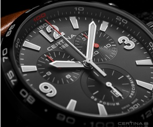 Vybrané modely Certina ukazují desetiny vteřiny na čítači chronografu na pozici