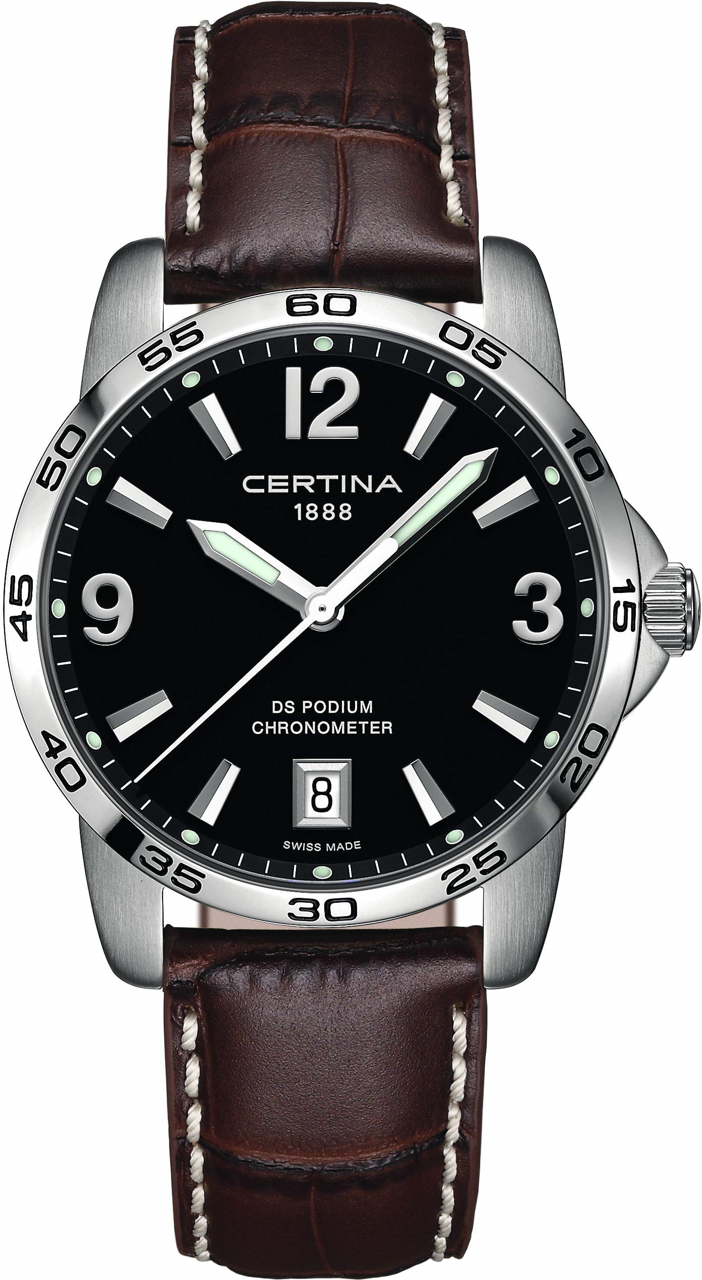odolnost proti nárazům, abnormální tvrdost - díky tomu nenarušení povrchu ani při velké fyzické zátěži a nádherná čirá čistota, která zůstává po celou životnost sklíčka. Čtení času na hodinkách je poté radost - sklíčko je totiž stále jako nové. Safírová sklíčka se vyrábí v různých podobách a tvarech.Super-LumiNova (SLN) je luminiscenční materiál s vlastnostmi fosforu. Typ BG W9, který Certina používá, vydává ve tmě modravé světlo. Tato svítivost se ve tmě postupně ztrácí, ale na světle se automaticky obnovuje pro naplnění kapacity materiálů pro další noční či večerní svítivost.Certina používá pro výrobu svých nádherných kožených řemínků pouze opravdovou přírodní kůži. Řemínky jsou vyráběné s opravdovou pečlivostí pro maximální kvalitu s ohledem na každodenní nošení.Přesný a ještě přesnější - to je chronometr. Chronometr jsou hodinky, jejichž přesnost byla oficiálně testována a ověřena nezávislou laboratoří. Tento model byl testován oficiální švýcarskou testovací laboratoří Control Officiel Suisse des Chronometres (COSC) a byl mu udělen certifikát kvalityUšlechtilá nerez ocel 316L, kterou Certina používá, je mimořádně odolná,