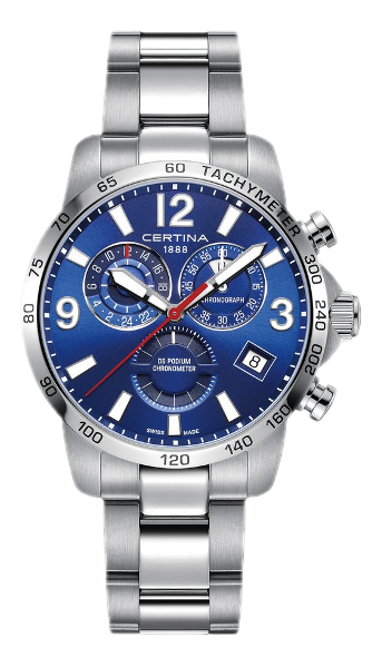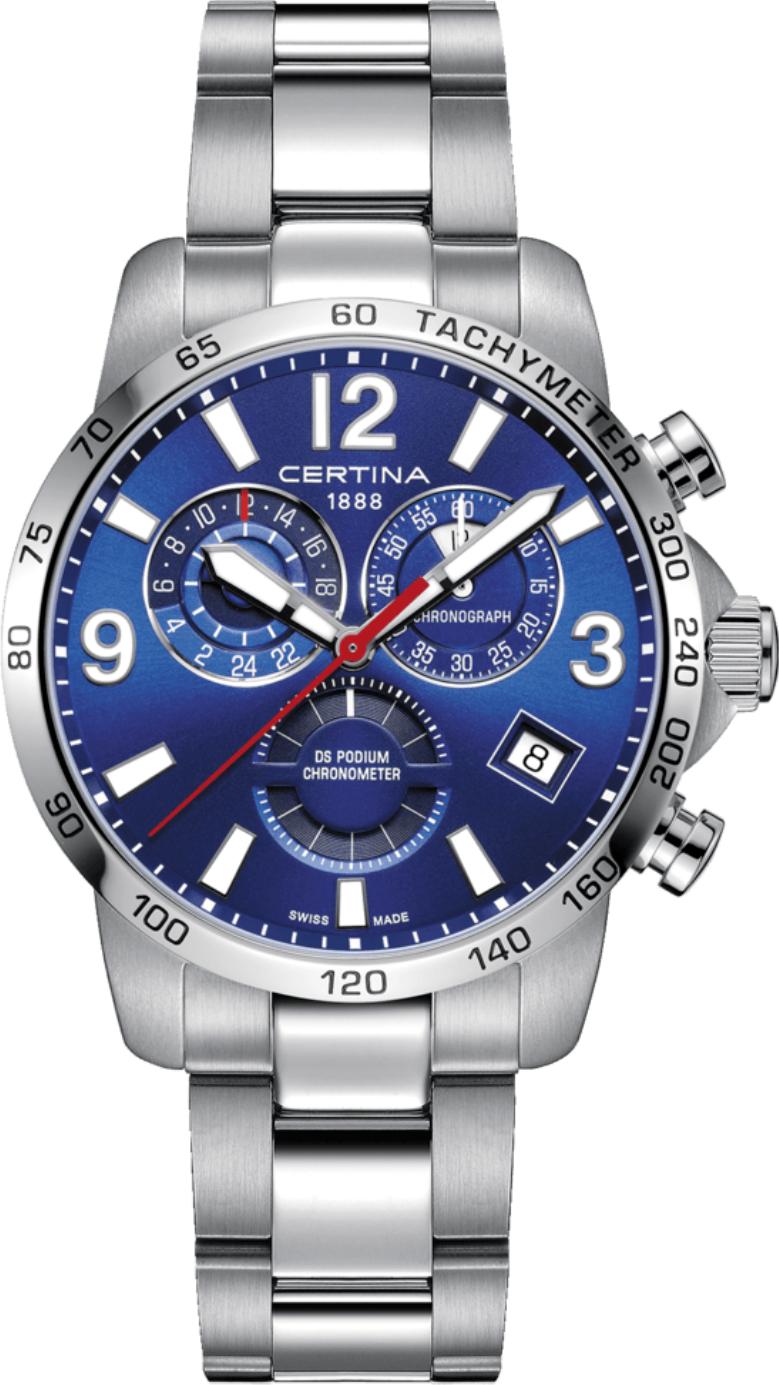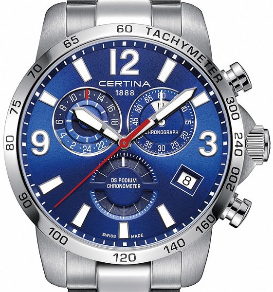 odolnost proti nárazům, abnormální tvrdost - díky tomu nenarušení povrchu ani při velké fyzické zátěži a nádherná čirá čistota, která zůstává po celou životnost sklíčka. Čtení času na hodinkách je poté radost - sklíčko je totiž stále jako nové. Safírová sklíčka se vyrábí v různých podobách a tvarech.Super-LumiNova (SLN) je luminiscenční materiál s vlastnostmi fosforu. Typ BG W9, který Certina používá, vydává ve tmě modravé světlo. Tato svítivost se ve tmě postupně ztrácí, ale na světle se automaticky obnovuje pro naplnění kapacity materiálů pro další noční či večerní svítivost.Přesný a ještě přesnější - to je chronometr. Chronometr jsou hodinky, jejichž přesnost byla oficiálně testována a ověřena nezávislou laboratoří. Tento model byl testován oficiální švýcarskou testovací laboratoří Control Officiel Suisse des Chronometres (COSC) a byl mu udělen certifikát kvalityUšlechtilá nerez ocel 316L, kterou Certina používá, je mimořádně odolná,