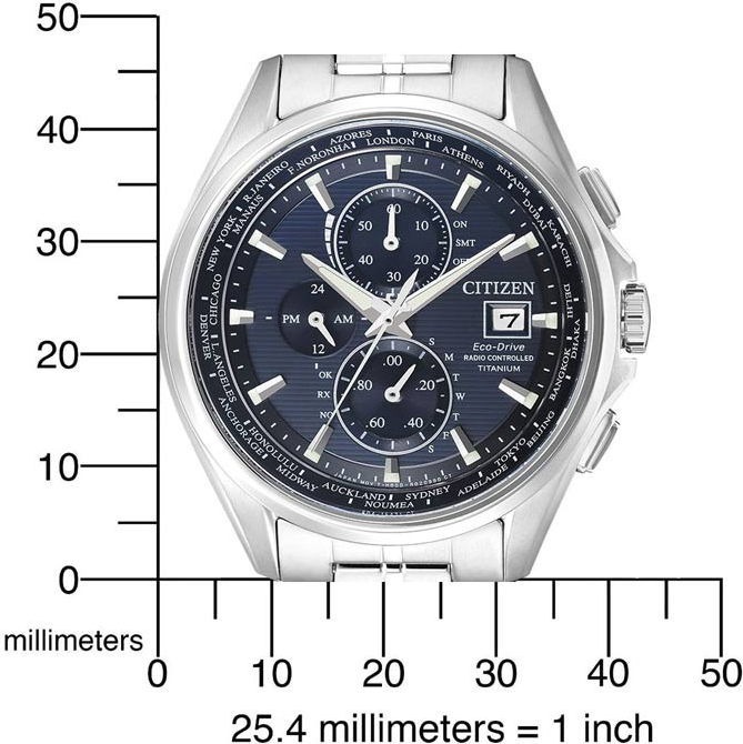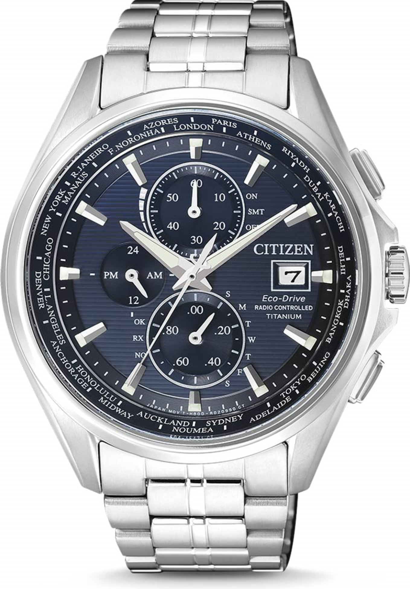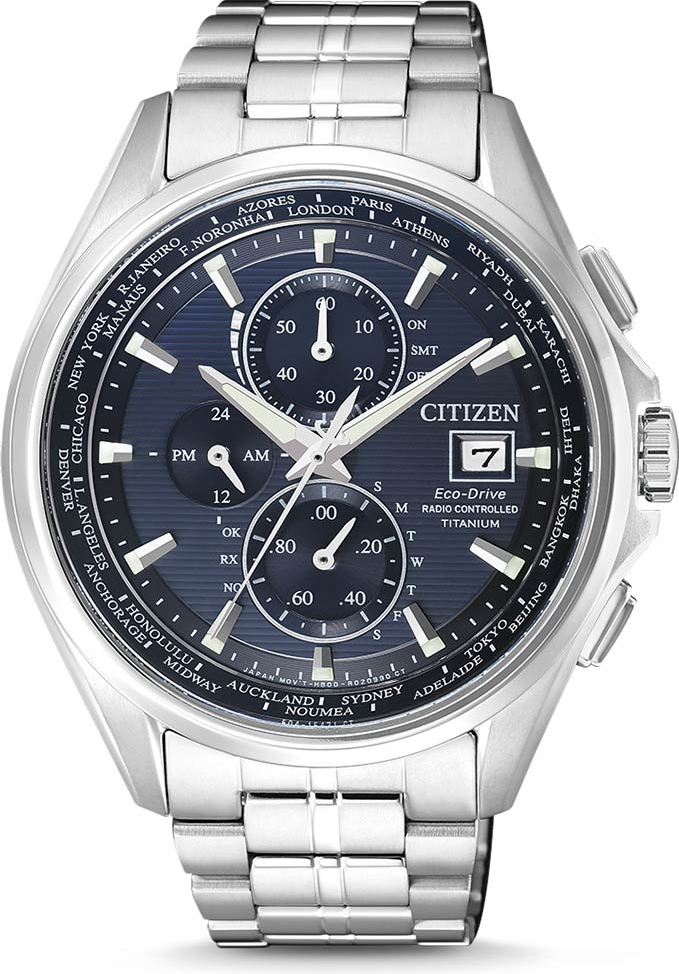 • Funkce a popis:Čas, datum, den v týdnu, chronograf = stopky, duální čas, věčný kalendář, řízené rádiem, ukazatel stavu nabití, indikace slabého akumulátoru, strojek Citizen Quartz - přesnost chodu 0 - 0,4 vteřiny denně, systém Eco-drive - dobíjení akumulátoru umělým i přírodním světlem (energie pro pohon strojku při úplném nabití akumulátoru 6 - 60 měsíců - titan-lithiový akumulátor)