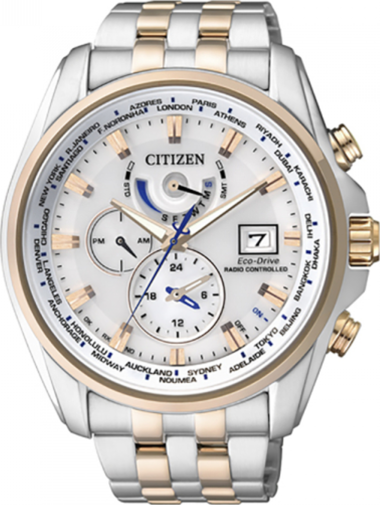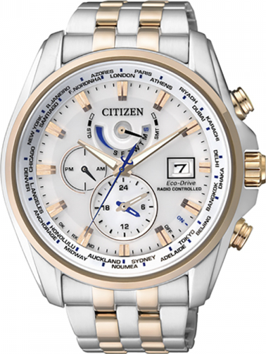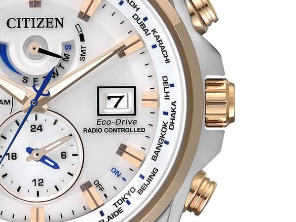 • Funkce a popis:Čas, datum, upozornění na datum, duální čas, časové zóny, plně automatický kalendář (automatické seřizování letního a zimního času, automatické seřizování datumu + hodinky poznají přestupný rok), svítící ručky a indexy (luminiscence), světové časy,  příjem rádiového signálu (naprosto přesný čas), systém Eco-drive - dobíjení akumulátoru umělým i přírodním světlem (energie pro pohon strojku při úplném nabití akumulátoru 6 měsíců - titan-lithiový akumulátor), funkce detekce otřesů hodinek, automatická korekce rukou, hodinky váží 183 gramů
