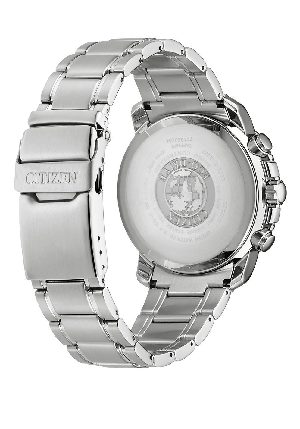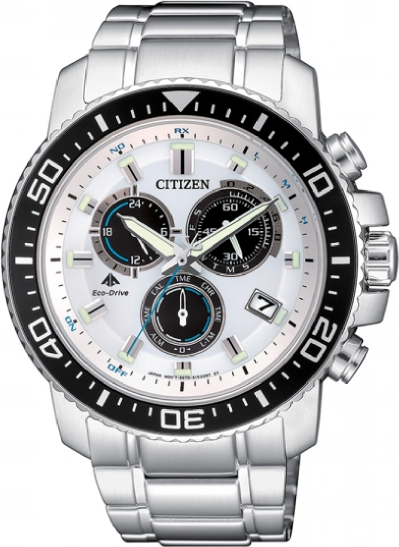 • Funkce a popis:Čas, 24 hodinový číselník, datum, duální čas, automatický kalendář, alarm, kontrola stavu baterie, rádiem řízené, otočná luneta, šroubovací korunka, stopky (chronograf), svítící ručky a indexy, strojek Citizen Quartz - přesnost chodu 0 - 0,4 vteřiny denně, systém Eco-drive - dobíjení akumulátoru umělým i přírodním světlem (energie pro pohon strojku při úplném nabití akumulátoru 6 - 60 měsíců - titan-lithiový akumulátor)