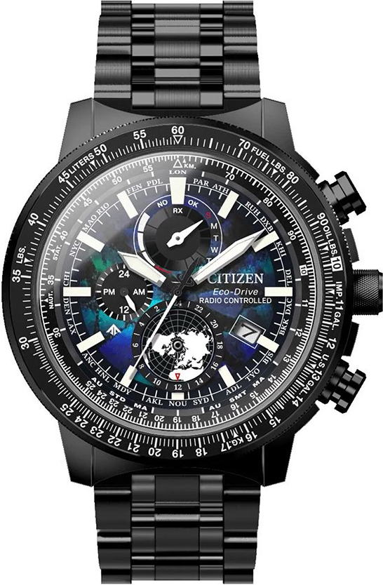 • Funkce a popis:Čas, datum, strojek quartz Radio Controlled Japan Citizen Eco-drive Caliber H864 = přesnost chodu 0 vteřiny/rok (rádiem řízený čas), kapacita akumulátoru (rezerva chodu) = 2,5 roku (dobíjení titan-lithiového akumulátoru přírodním i umělým světlem), zobrazení času (analogově): hodiny, minuty, sekundy, 24 hod. ukazatel, zobrazení kalendáře (analogově): datum, den v týdnu, automatický kalendář, světové časy, časová pásma, letní čas, zobrazení času UTC, FUNKCE PŘÍJMU RÁDIOVÉHO ČASOVÉHO SIGNÁLU (RADIO CONTROLLED) = vysílače rádiového signálu: DCF, WWVB, JJY, BPC, automatická aktivace příjmu signálu, manuální aktivace příjmu signálu, potvrzení stavu příjmu, ukazatel výsledku posledníhoh příjmu, energeticky úsporný režim, výstraha potřeby dobití, ochrana proti přílišnému nabití, automatická korekce ruček, antimagnetické provedení, detekce nárazů, SPECIÁLNÍ PARAMETRY A FUNKCE: otočný subčíselník se severní polokouli slouží k zobrazení UTC a přibližnému odečtení času v jednotlivých částech světa
