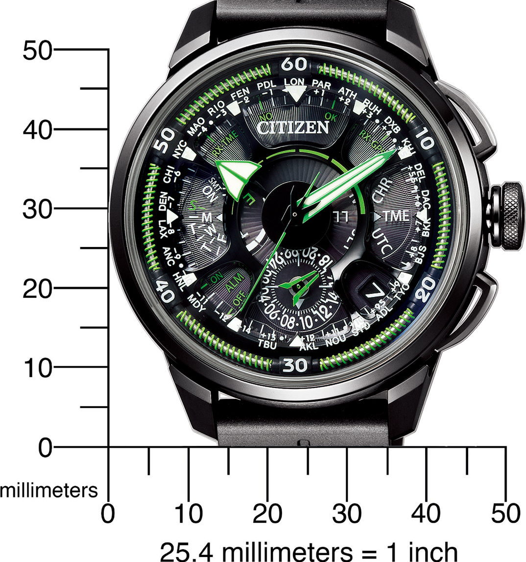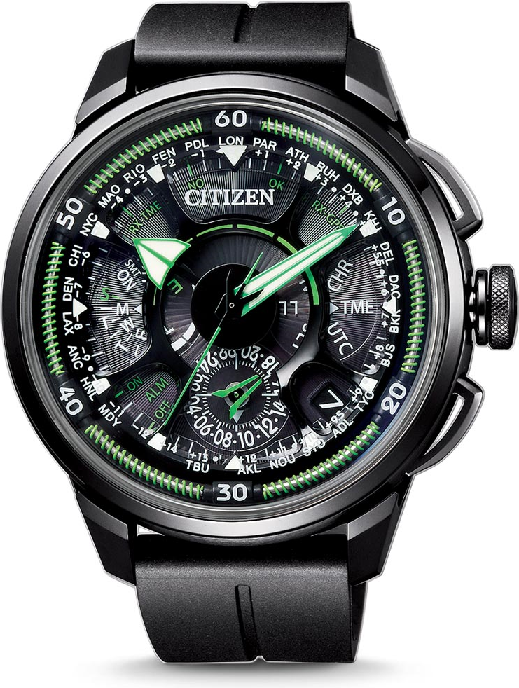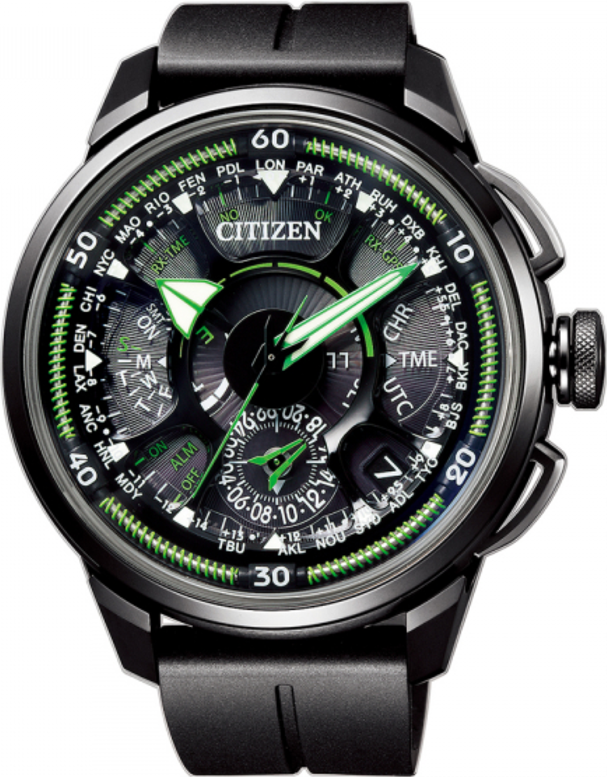 • Funkce a popis:Čas, datum, Eco-Drive (patent Citizen = dobíjené světlem) - rezerva chodu při plném dobití akumulátoru až 540 dní, 24 hodin displej, 39 časových pásem k dispozici, 5 let výkonová rezerva ve tmě, 540 Tage, antimagnetické, automatická korekce ruce, určování polohy pomocí GPS, výstražná indikace při nedostatečném nabití akumulátoru, Light úroveň indikátoru, světová pásma, věčný kalendář, satelitní systém měření a hlídání přesnosti času, funkce detekce otřesů, stopky: max. 23h, 59min, 1/20 sec., titanové pouzdro je povrchově ztvrzené DLC úpravou (Citizen)