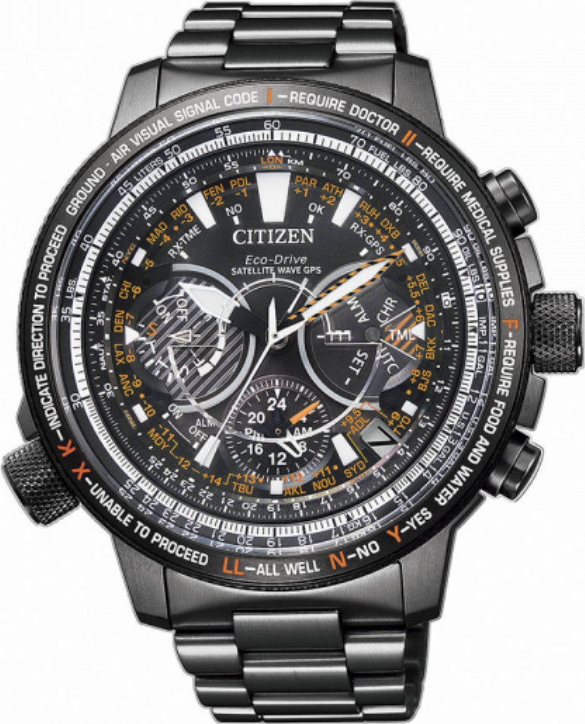 • Funkce a popis:Čas, datum, řízené GPS = naprosto přesný čas, věčný kalendář, indikace zeslabující se energie z baterie, ukazatel stavu nabití akumulátoru, světový čas, stopky, duální čas, indikace síly světla dopadajícího na sklíčko hodinek (7 úrovní síly intenzity světla)