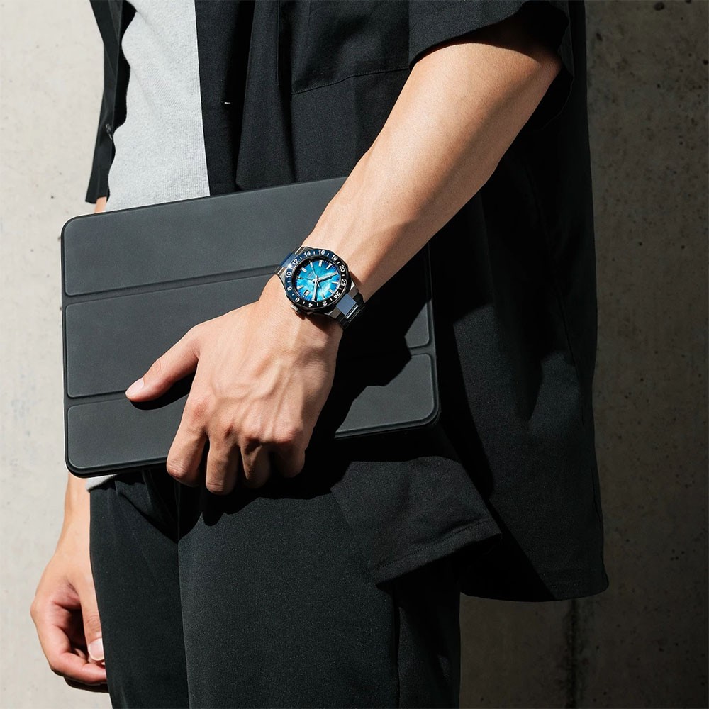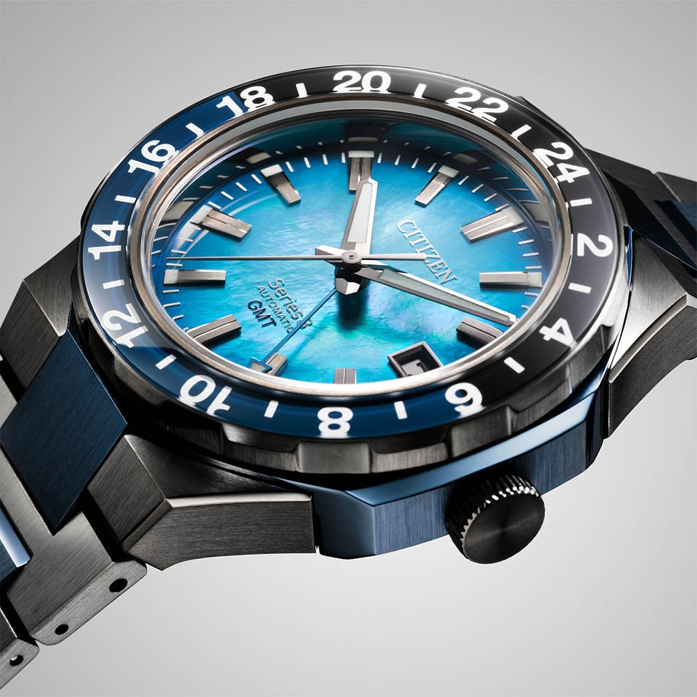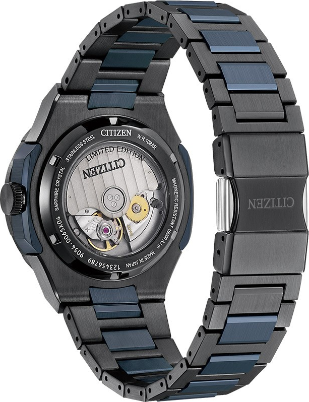 • Funkce a popis:Čas, datum, obousměrně otočná luneta pro funkci GMT, mechanický in-house strojek Citizen 9054 s automatickým nátahem a s frekvencí 28800 polokmitů za hodinu (4Hz) a má 24 kamenných uložení, rezerva chodu až 50 hodin,safírové sklíčko, funkce "Hacking", tedy zastavení sekundové ručky při nařízení hodinek a možnost manuálního nátahu korunkou, luminiscence na ručkách a indexech, náhled na strojek skrz zadní víčko