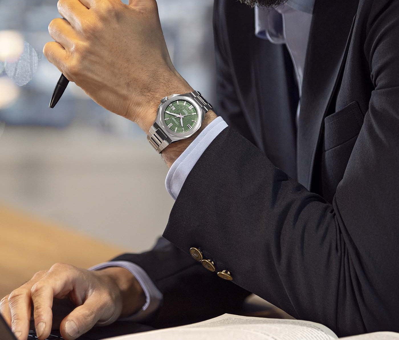 Citizen Series 8 NB6080-51W jsou moderní mechanické hodinky, které spojují japonskou přesnost s ostře řezaným, elegantně sportovním designem. Zelený číselník v jemném, strukturovaném pojetí působí luxusně a zároveň velmi aktuálně - je snadno kombinovatelný k saku i k volnočasovému outfitu. Díky čistým liniím a přehledným indexům zůstává čitelnost výborná i při rychlém pohledu během dne.