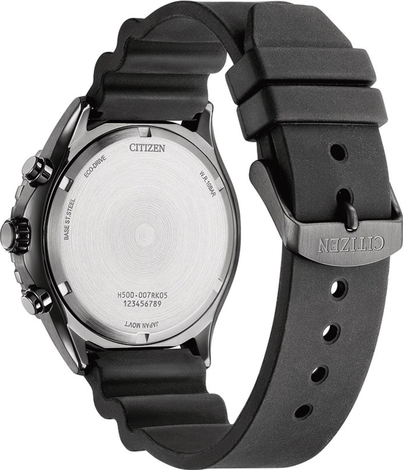• Funkce a popis:Čas, datum, chronograf = stopky, strojek quartz Japan Eco-drive H500 - kapacita akumulátoru (rezerva chodu) až 5 měsíců, přesnost chodu = 0 - 0,5 vteřiny denně, indikace potřeby dobití akumulátoru (hodinky dvouvteřinovými intervaly vteřinové ručičky indikují málo energie v akumulátoru a upozorňují tímto majitele/majitelku hodinek na potřebu vystavení hodinek světlu pro dobití), ručičky a indexy jsou opatřeny luminiscenční vrstvou (po krátkém nasvícení je v noci po dlouhou dobu dobře čitelný čas)