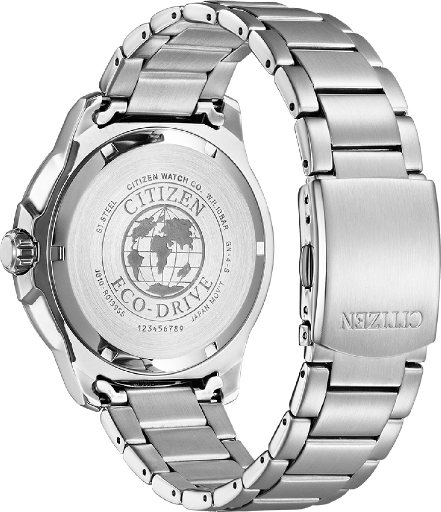 • Funkce a popis:Čas, datum, strojek quartz Japan Citizen Eco-drive Caliber J810 - kapacita akumulátoru (rezerva chodu) až 8 měsíců (cca. 240 dní), přesnost chodu = 0 - 0,5 vteřiny denně, indikace potřeby dobití akumulátoru (hodinky dvouvteřinovými intervaly vteřinové ručičky indikují málo energie v akumulátoru a upozorňují tímto majitele/majitelku hodinek na potřebu vystavení hodinek světlu pro dobití), ručičky a indexy jsou opatřeny luminiscenční vrstvou (po krátkém nasvícení je v noci po dlouhou dobu dobře čitelný čas)