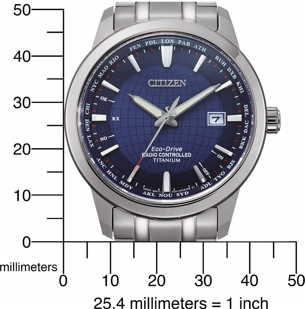 • Funkce a popis:Čas, datum, perpetual calendar (věčný kalendář, který pozná měsíční změny), world time (světové časy), rádiem řízený strojek Japan Quartz Citizen H145 - naprosto přesný čas, systém Eco-Drive - dobíjení akumulátoru umělým i přírodním světlem (energie pro pohon strojku při úplném nabití akumulátoru 6 měsíců (24 měsíců v režimu úspory energie akumulátoru v místě bez příjmu světla), ručičky a indexy v noci krásně svítí (Super-LumiNova), funkce detekce otřesů, hodinky jsou antimagnetické
