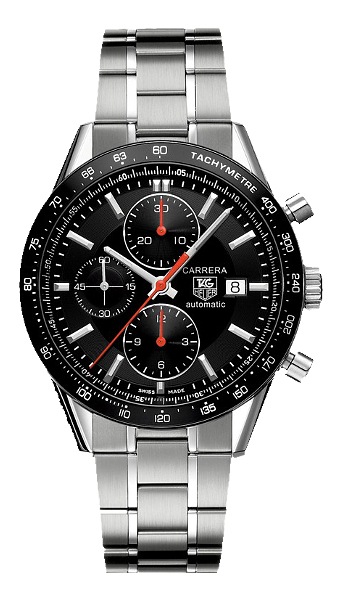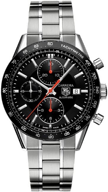 • Funkce a popis:Čas, datum, chronograf = stopky, tachymetr, strojek swiss Tag Heuer ETA 7750 cal.16 (25 kamenů) - kmity setrvačky 28.800/h = přesnost chodu 3 - 4 vteřiny denně, rezerva chodu 42 hodin, bezpečnostní spona náramku, svítící ručky a indexy