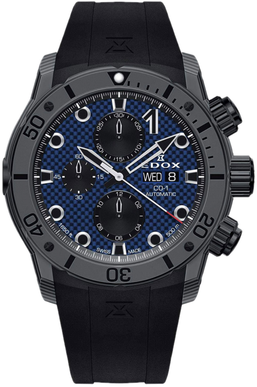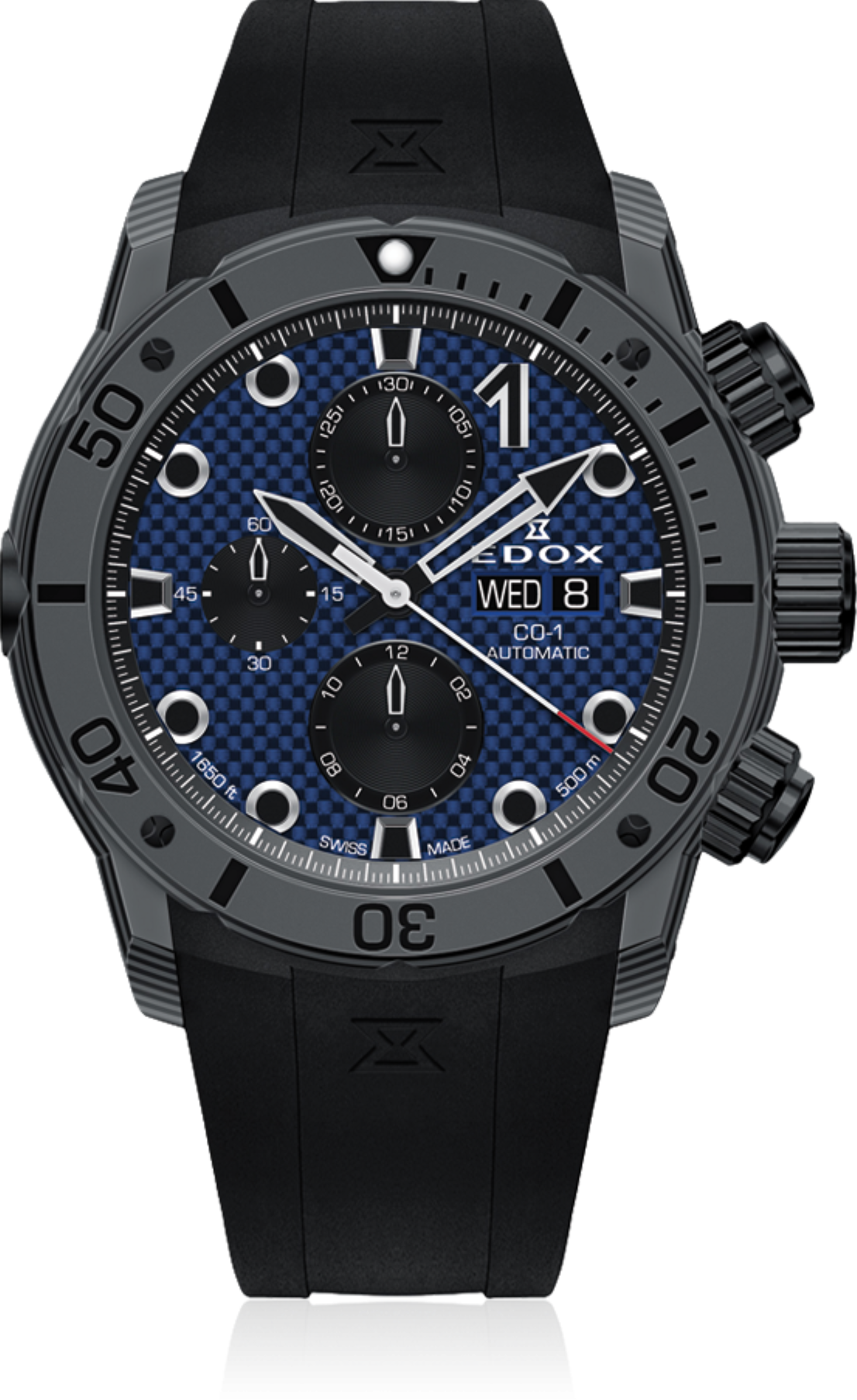 • Funkce a popis:Čas, datum, chronograf = stopky s přesností 1/1 vteřiny max. 12 hodin, ukazatel dne v týdnu, luminiscenční ručičky a indexy, strojek swiss Edox 011 ( Valjoux 7750 –25 kamenů) - rezerva chodu 46 hodin, polokmity setrvačky 28.800/h = přesnost chodu 2 - 4 vteřiny denně, průhledné zadní víčko pro náhled na strojek (safírové),automatický + ruční nátah, šroubovací vodotěsná korunka, héliový ventil, keramická (nepoškrabatelná) luneta (jednosměrně otáčecí), průhledné zadní víčko pro náhled na strojek