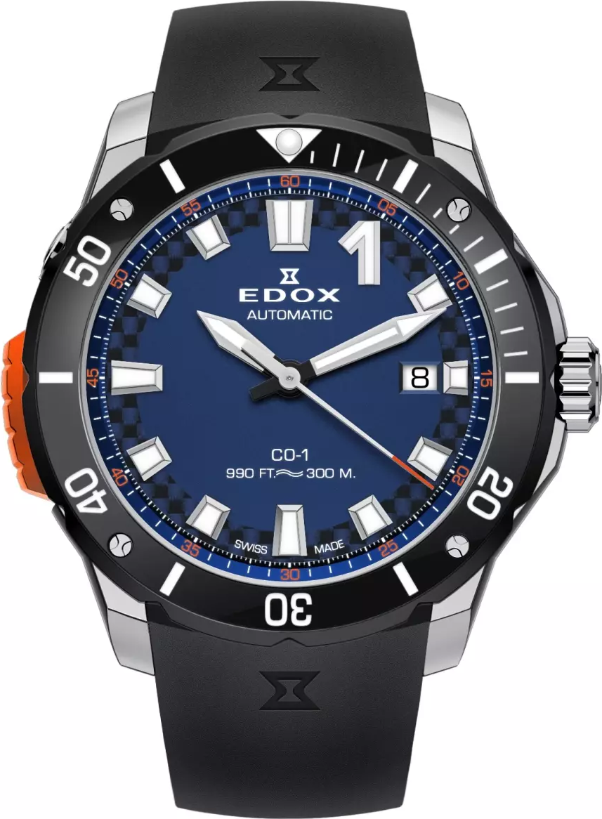 • Funkce a popis:Čas, datum, švýcarský automatický strojek EDOX Caliber 80 na bázi Sellita SW200-1 (26 kamenů), 28 800 polokmitů za hodinu (4 Hz), rezerva chodu činí přibližně 38 hodin, jednosměrná otočná keramická luneta, svítící ručičky a indexy (luminiscence), šroubovací korunka, automatický heliový ventil