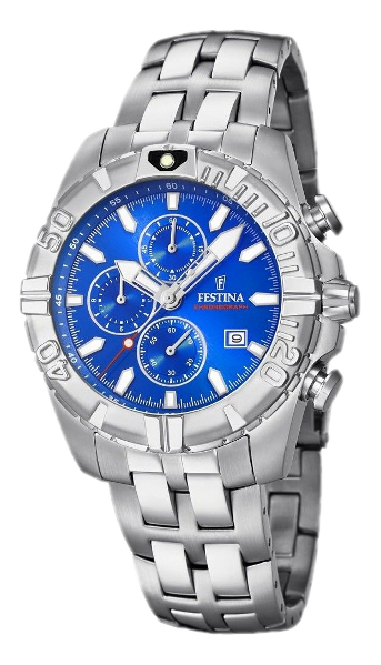 • Funkce a popis:Čas, datum, chronograf = stopky, svítící ručky a indexy, jednosměrně otočná luneta