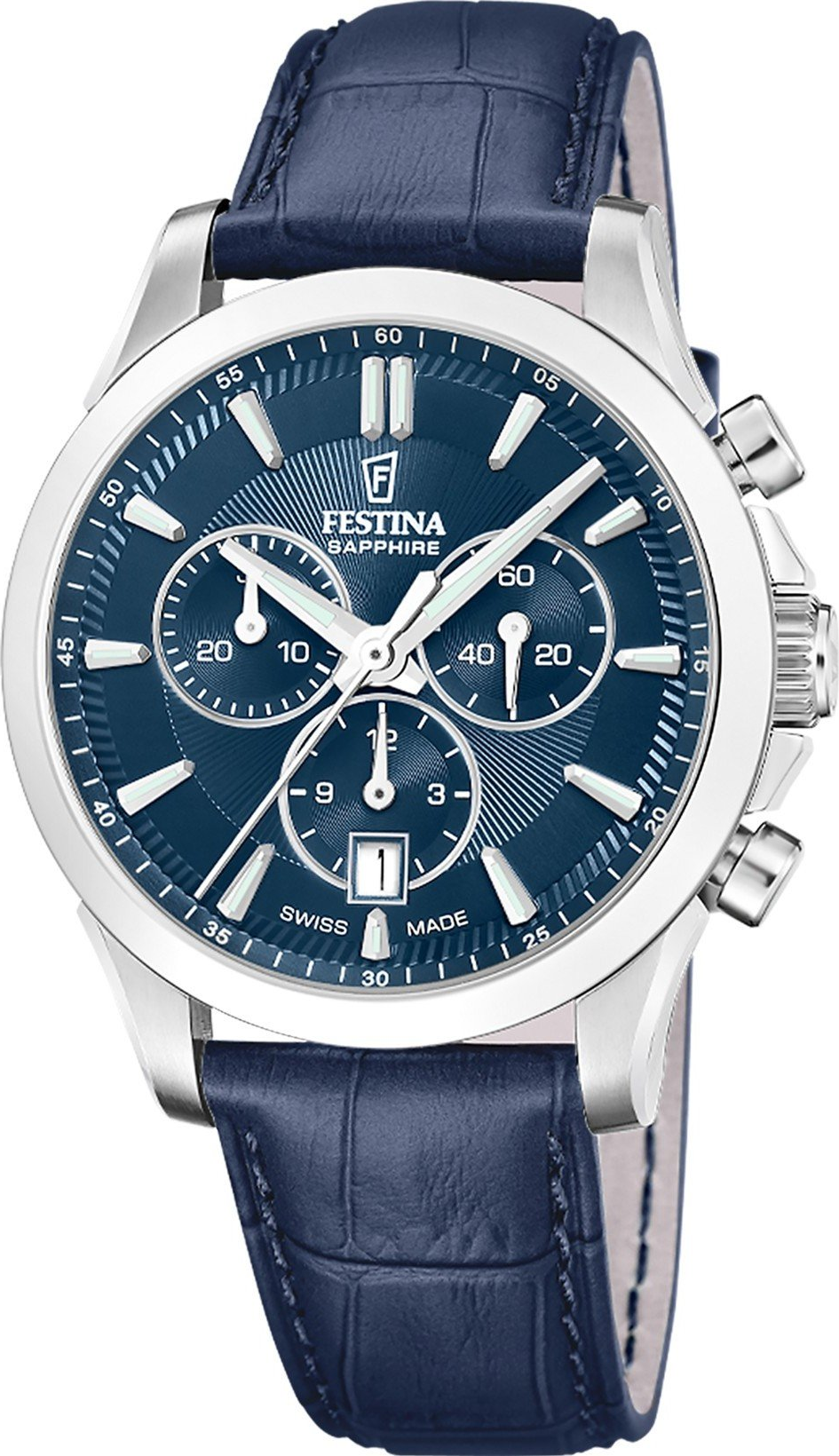 Festina Swiss Made Chrono 20094/3 jsou pánské hodinky Festina pro muže, kteří chtějí spojit elegantní vzhled s reálně využitelnou funkcí chronografu - stopek. Kombinace modrého číselníku a modrého koženého pásku působí moderně, přitom zůstává nadčasová pro každodenní nošení do práce i na schůzky. Přehledné analogové zobrazení doplňuje datum, takže hodinky fungují jako stylový doplněk i praktický ...