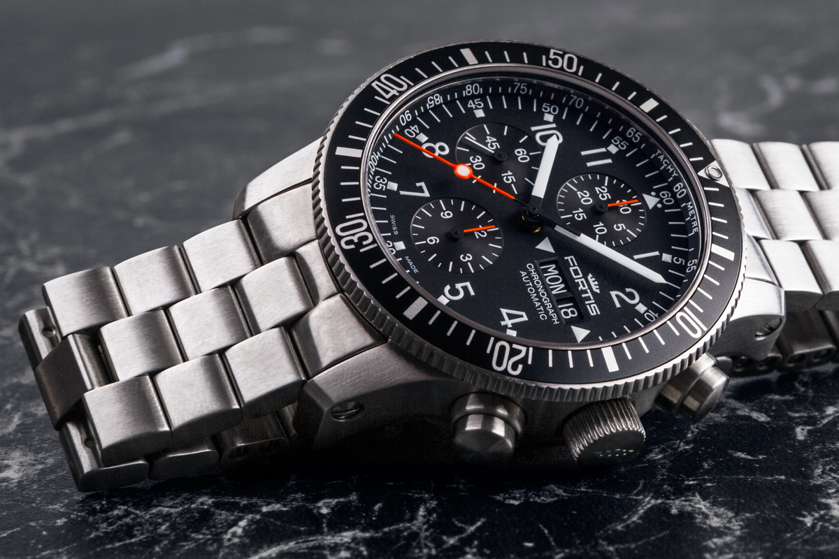 • Funkce a popis:Čas, datum, den v týdnu, chronograf = stopky, svítící ručky a indexy Superluminova, tachymetr = km/h, strojek swiss Valjoux 7750 (25 kamenů) - rezerva chodu 48 hodin, automatický nátah (pohyb ruky) + ruční nátah (hodinky lze také natahovat i korunkou), polokmity setrvačky 28.800/h = diference 2 - 4 vteřiny denně, jednosměrně otočná luneta, bezpečnostní spona náramku