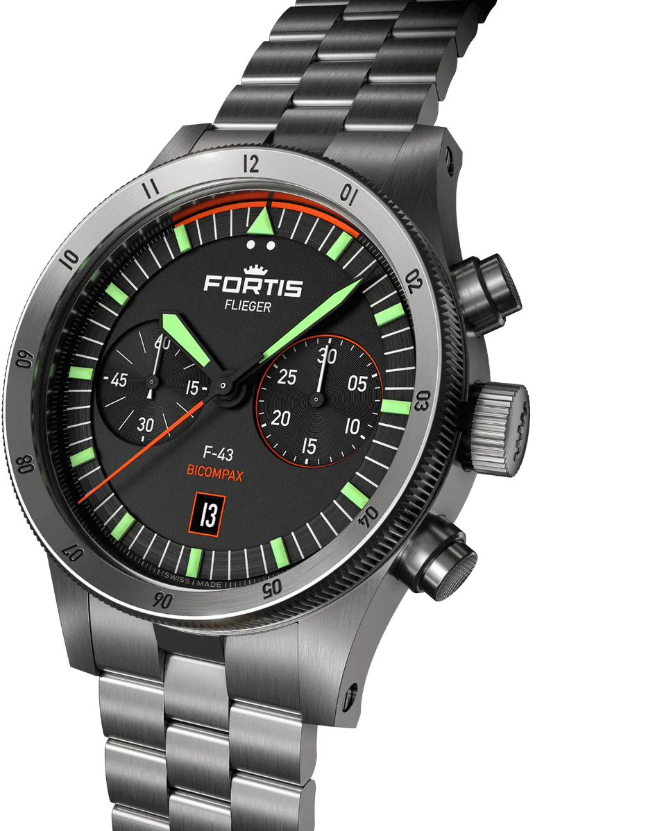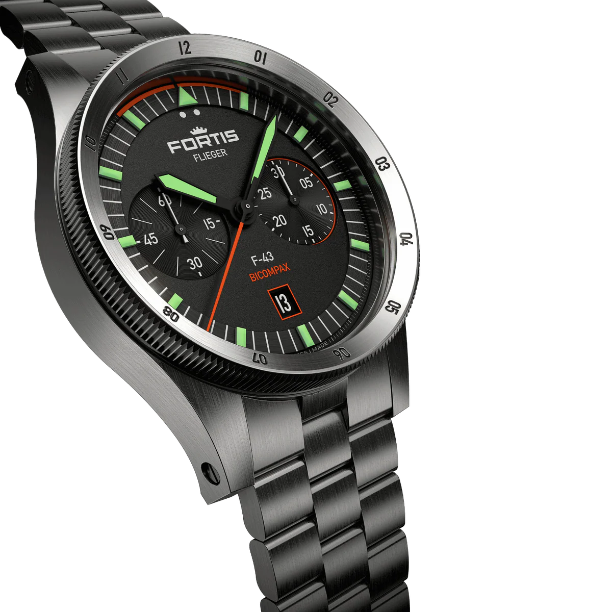 Fortis - Flieger - F4240004 - Flieger F-43 Bicompax on Block Bracelet