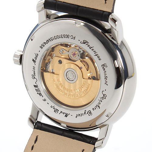• Funkce a popis:Čas, strojek FC-315 (použit strojek Sellita SW-200), 26 kamenů - rezerva chodu 38 hodin, kmity setrvačky 28.800/h = diference 3 - 4 vteřiny denně, otevřené srdce, průhledné zadní víčko pro náhled na strojek