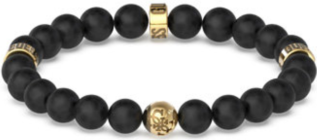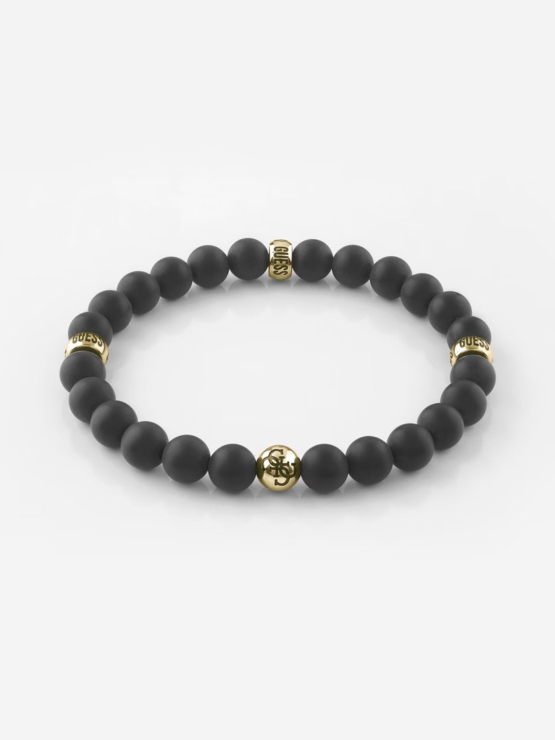 Elastický náramek z nerezové oceli a achátových korálků. Gravírované logo 4G na korálku. Délka náramku: 18 cm. Průměr korálku: 0,8 cm.