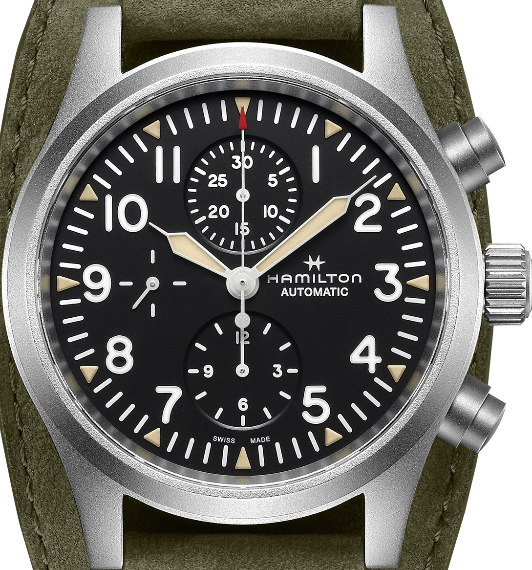 důležitý prvek estetického designu celých hodinek.Švýcarská společnost Hamilton je známá svou pověstí spolehlivých švýcarských hodinek. Pokud jde o letectví, jejich dlouhodobé zkušenosti sloužící letecké komunitě umožňuje této značce pochopit důležitost přesnosti letu. Správné načasování se stává ještě důležitějším, když piloti a navigátoři zachraňují lidské životy. Zde totiž musí být spolehlivost časomíry stoprocentní.