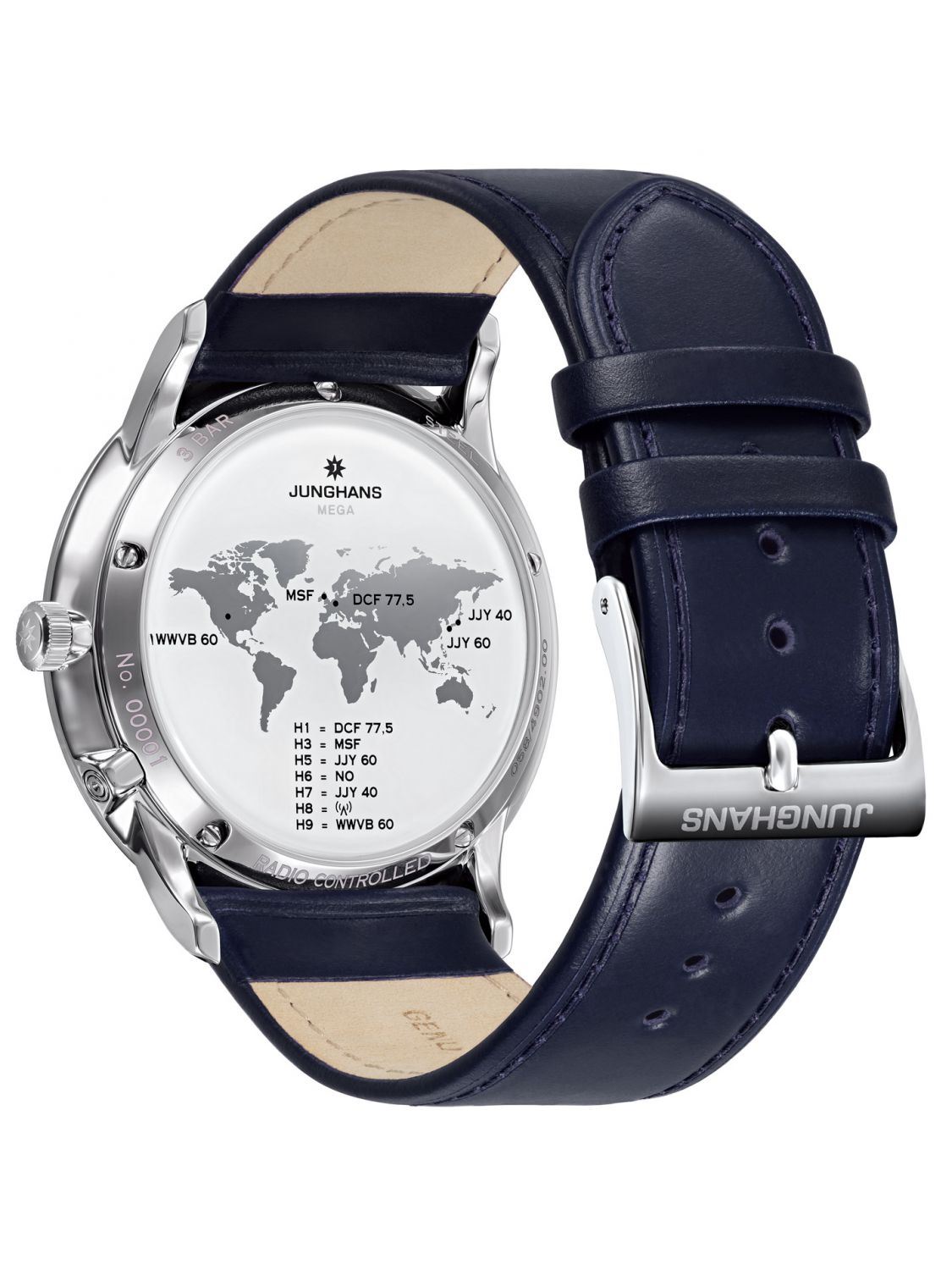 • Funkce a popis:Čas, datum, mimostředná vteřinová ručička, quartzový strojek J101.66, řízený rádiem, bez odchylky, mimo signál +/- 8s/rok. Rádiové řízení tohoto strojku je multifrekvenční, to znamená, že zachytí signál na všech šesti rádiových vysílačích, rozmístěných po světě. I v případě, že se budete nacházet mimo dosah signálu, dosahuje strojek J101.66 extrémně vysoké přesnosti - konkrétně +/- 8s za rok. Seřízení času je možné také pomocí chytrého mobilního telefonu za pomoci aplikace Junghans MEGA App (pro Android a IOS). Tento strojek dále nabízí funkci věčného kalendáře bez nutnosti korekce až do roku 2400, a to dokonce i bez příjmu rádiového signálu.