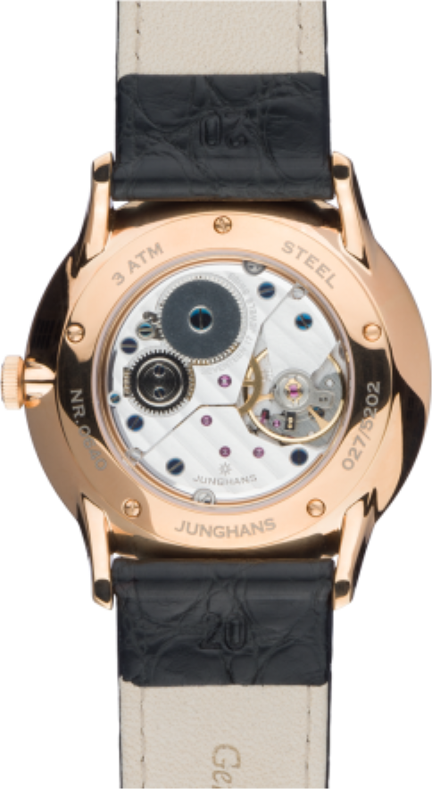 • Funkce a popis:Čas, strojek s ručním nátahem Junghans J815.1 (17 kamenů) - rezerva chodu 42 - 44 hodin, polokmity setrvačky 21.600/h = diference 3 - 5 vteřin denně, hodinky lze dodat za příplatek se safírovým nepoškrabatelným sklíčkem