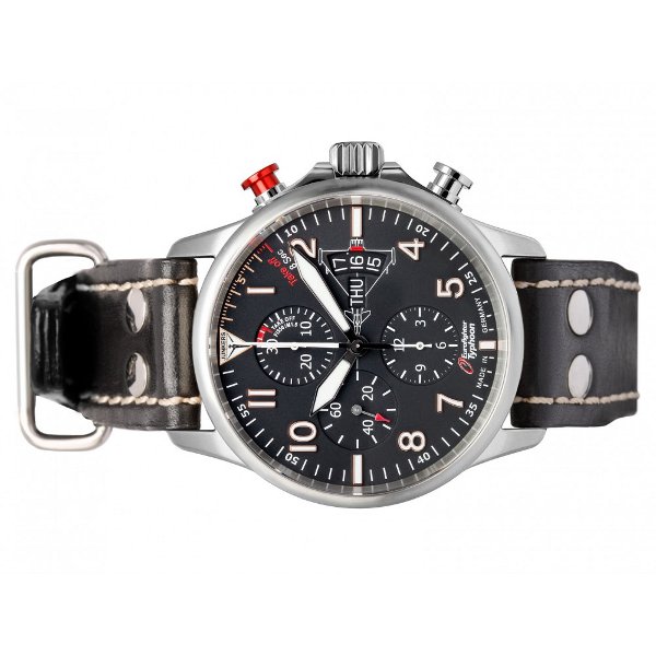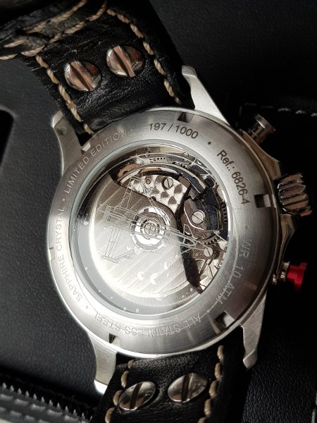 • Funkce a popis:Čas, datum, chronograf = stopky, svítící ručky a indexy, strojek swiss ETA (Valjoux 7750 – 25 kamenů) - rezerva chodu 46 hodin, kmity setrvačky 28.800/h = diference 3 - 4 vteřiny denně